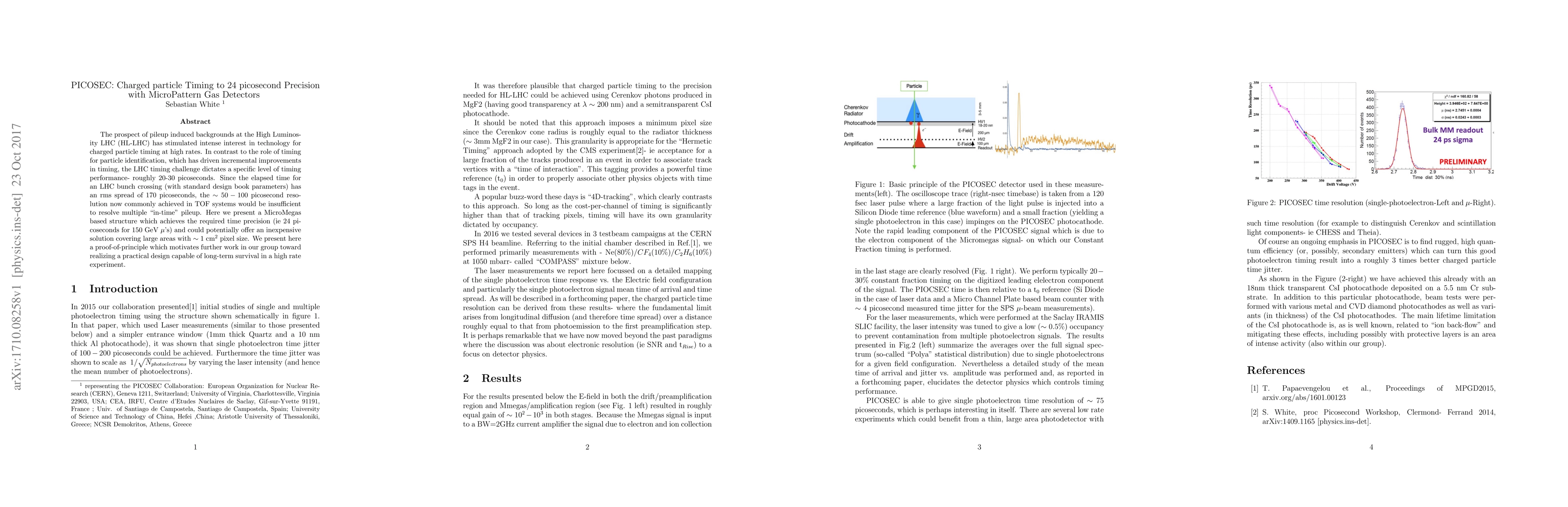 This paper introduces a MicroMegas based detector achieving 24 picosecond timing precision for charged particles, addressing the need for high-rate timing in the High Luminosity LHC to mitigate pileup backgrounds. The proposed design offers a cost-effective solution with large coverage and small pixel size, demonstrating a proof-of-principle for future practical implementation.
