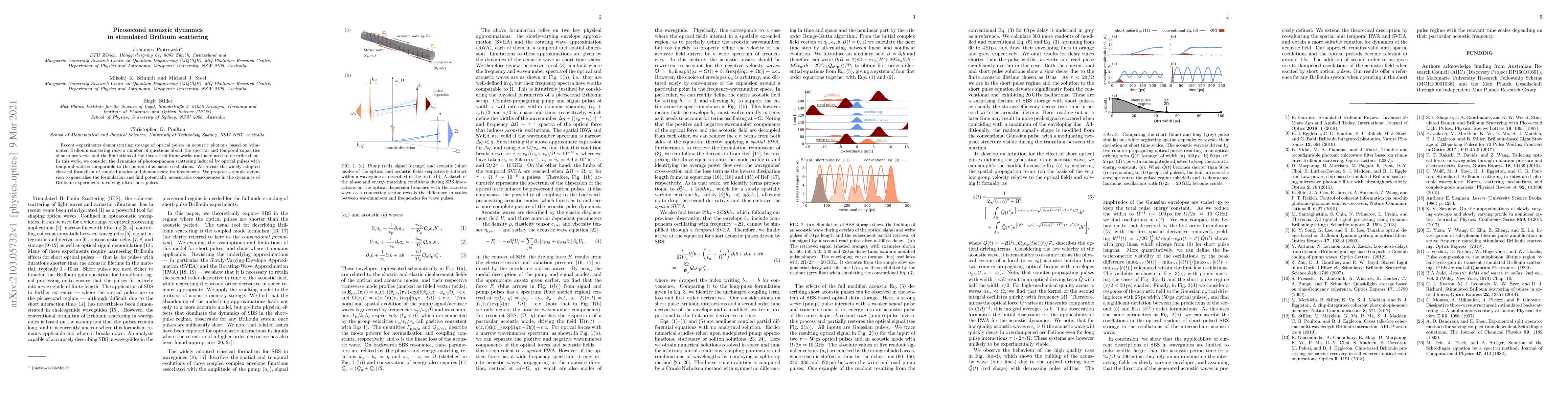 This paper investigates the picosecond acoustic dynamics in stimulated Brillouin scattering, revealing the limitations of classical coupled-mode theory when applied to ultra-short optical pulses. It proposes an extended model to better describe the photon-phonon scattering dynamics, with implications for future Brillouin experiments.