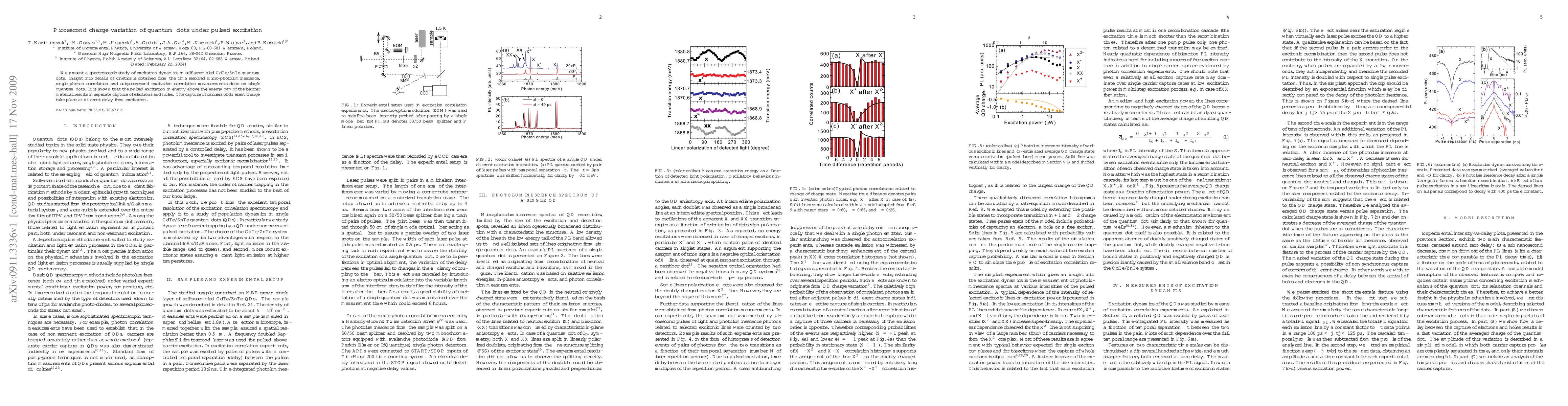 This study uses time-resolved micro-photoluminescence, single photon correlation, and subpicosecond excitation correlation measurements on single CdTe/ZnTe quantum dots to reveal that pulsed excitation above the barrier material's energy gap results in separate electron and hole capture, occurring at different delays post-excitation.