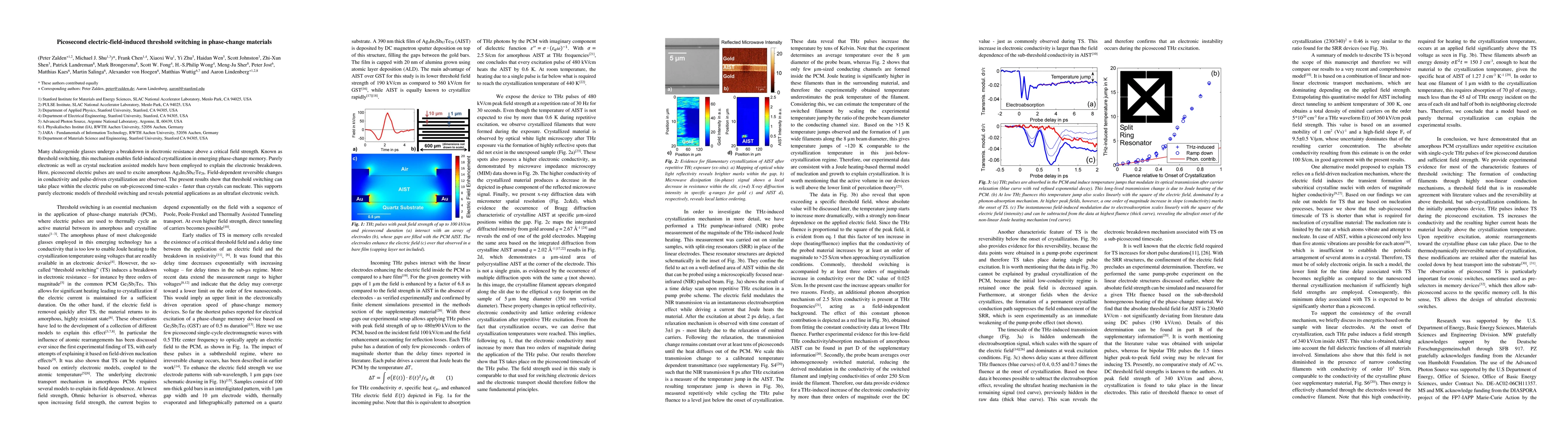 The paper presents experimental evidence for ultrafast threshold switching in phase-change materials, demonstrating its purely electronic origin and potential applications as ultrafast electronic switches.