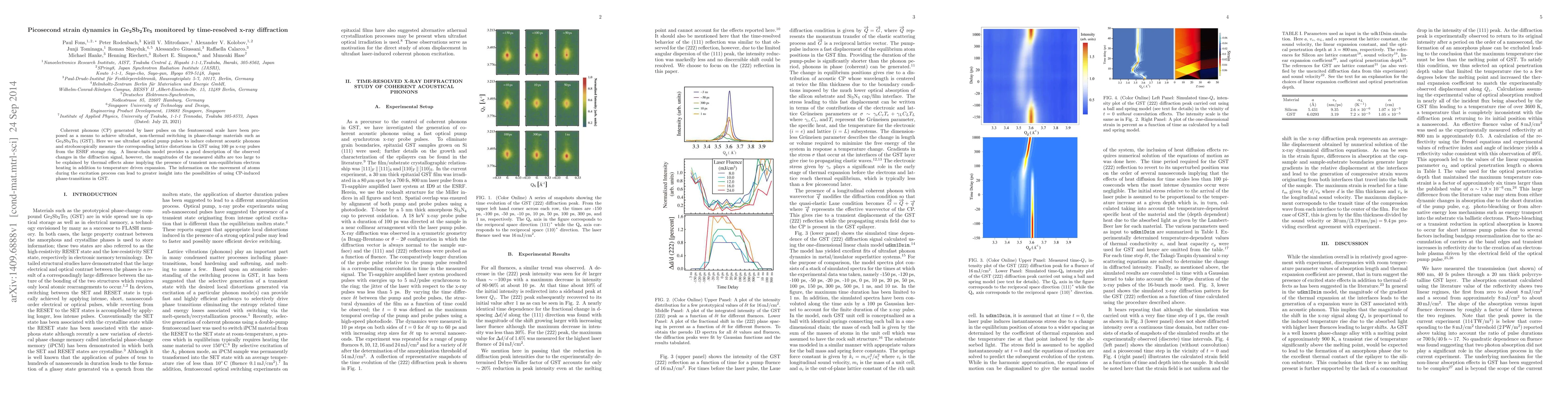 This research uses time-resolved x-ray diffraction to study picosecond strain dynamics in Ge$_{2}$Sb$_{2}$Te$_{5}$, a phase-change material. The study finds that both thermal effects and transient non-equilibrium electron heating contribute to lattice distortions, suggesting complex mechanisms in coherent phonon-induced phase transitions.