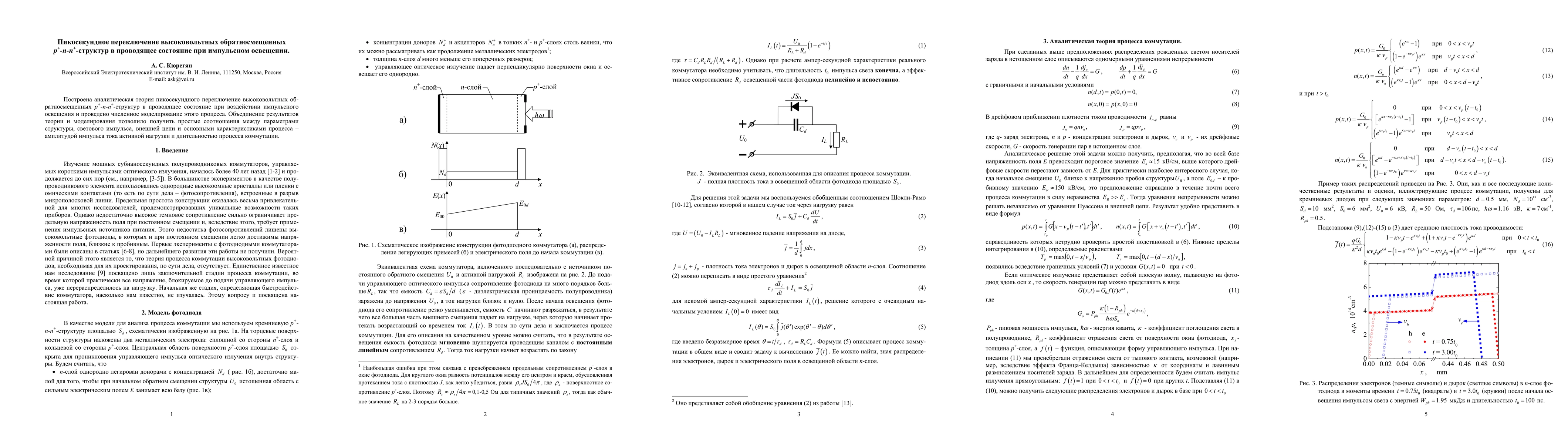 This paper develops an analytical theory and performs numerical simulations to understand the picosecond switching of high voltage reverse-biased p+-n-n+ structures into a conductive state via pulsed lighting, deriving a relation between structural, light, and circuit parameters affecting the switching process.