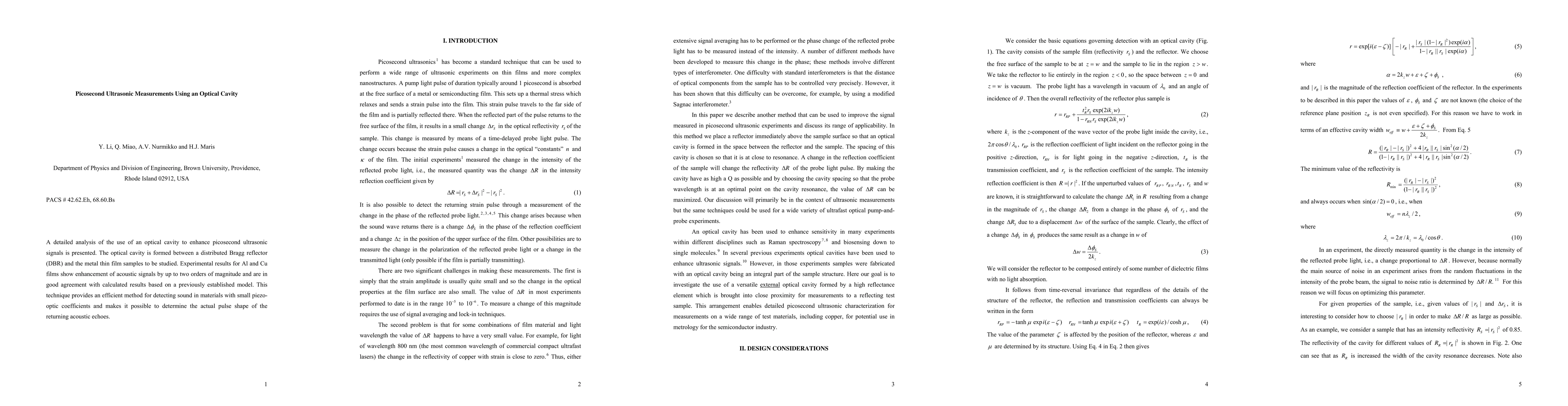 Researchers used an optical cavity to enhance picosecond ultrasonic signals in Al and Cu films, increasing signal strength by up to two orders of magnitude.