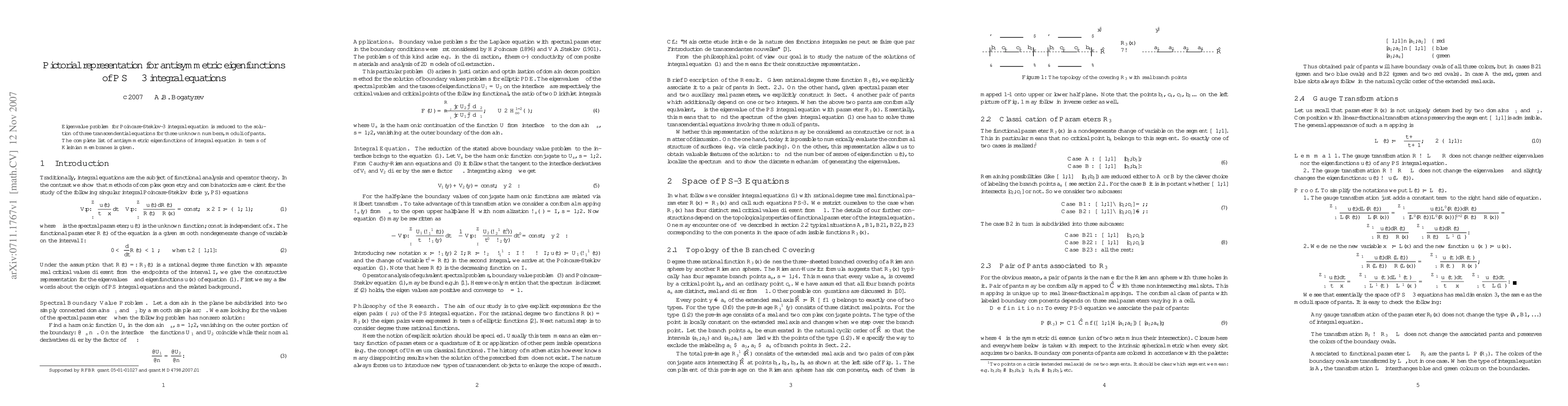 Eigenvalue problem for Poincare-Steklov-3 integral equation is reduced to the solution of three transcendential equations for three unknown numbers, moduli of pants. The complete list of antisymmetric eigenfunctions of integral equation in terms of Kleinian membranes is given.