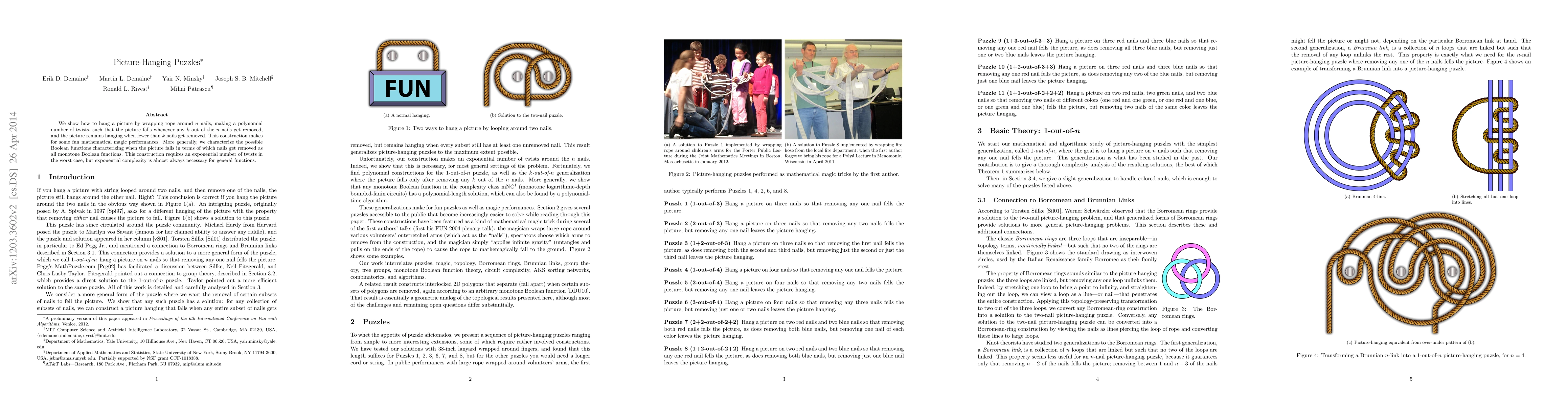 We show how to hang a picture by wrapping rope around n nails, making a polynomial number of twists, such that the picture falls whenever any k out of the n nails get removed, and the picture remains hanging when fewer than k nails get removed. This construction makes for some fun mathematical magic performances. More generally, we characterize the possible Boolean functions characterizing when the picture falls in terms of which nails get removed as all monotone Boolean functions. This construction requires an exponential number of twists in the worst case, but exponential complexity is almost always necessary for general functions.