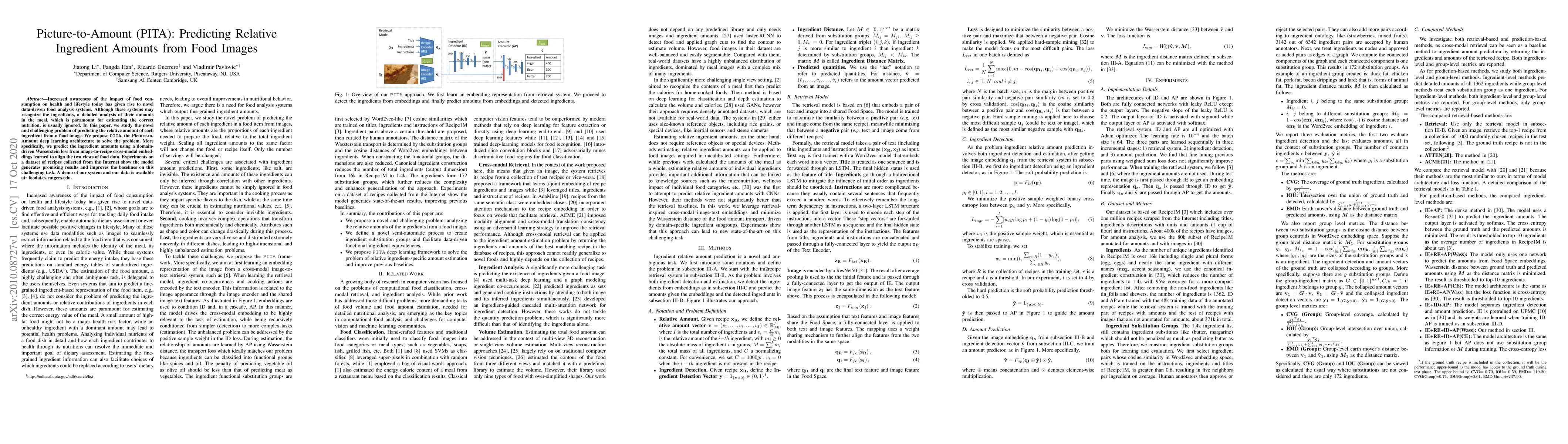 This paper introduces PITA, a deep learning model for predicting relative ingredient amounts from food images, addressing the gap in nutrition analysis systems. The proposed architecture uses a domain-driven Wasserstein loss to align image-to-recipe embeddings, achieving promising results and outperforming baselines on a dataset of online recipes.