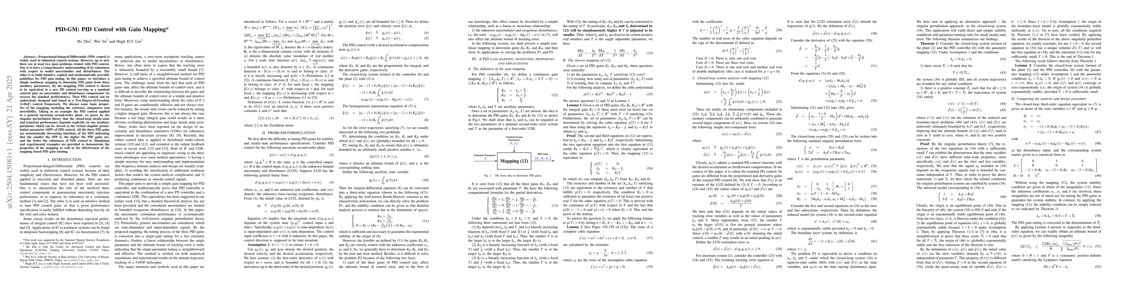 The paper introduces a simple nonlinear mapping to determine PID gains from three auxiliary parameters, transforming PID control into a Two-Degree-of-Freedom (2-DoF) control framework, and analyzing it using singular perturbation theory.