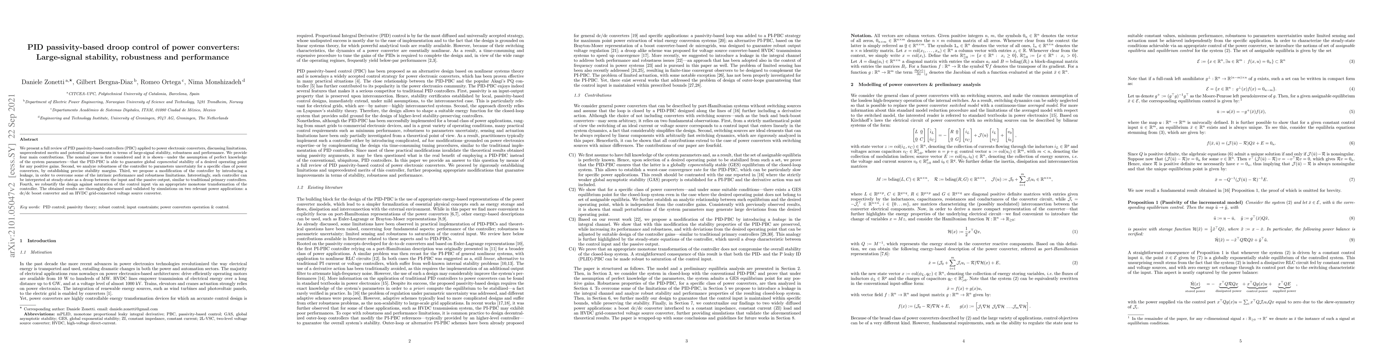 This paper reviews PID passivity-based controllers for power electronic converters, demonstrating their large-signal stability and robustness. It introduces modifications to enhance performance and robustness, and validates the design through simulations on dc/dc and HVDC converters.