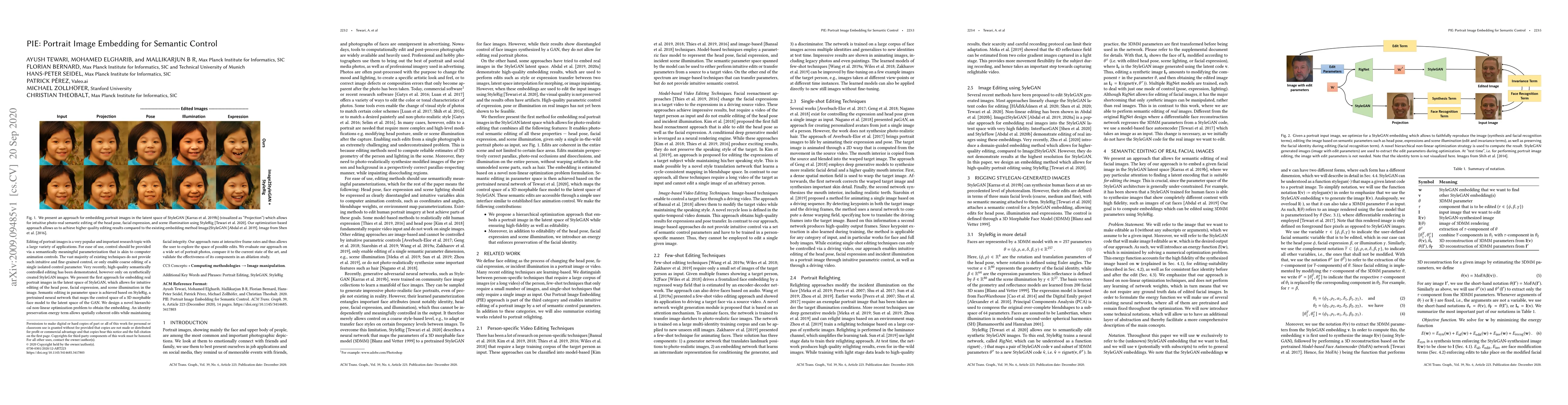 Editing of portrait images is a very popular and important research topic with a large variety of applications. For ease of use, control should be provided via a semantically meaningful parameterization that is akin to computer animation controls. The vast majority of existing techniques do not provide such intuitive and fine-grained control, or only enable coarse editing of a single isolated control parameter. Very recently, high-quality semantically controlled editing has been demonstrated, however only on synthetically created StyleGAN images. We present the first approach for embedding real portrait images in the latent space of StyleGAN, which allows for intuitive editing of the head pose, facial expression, and scene illumination in the image. Semantic editing in parameter space is achieved based on StyleRig, a pretrained neural network that maps the control space of a 3D morphable face model to the latent space of the GAN. We design a novel hierarchical non-linear optimization problem to obtain the embedding. An identity preservation energy term allows spatially coherent edits while maintaining facial integrity. Our approach runs at interactive frame rates and thus allows the user to explore the space of possible edits. We evaluate our approach on a wide set of portrait photos, compare it to the current state of the art, and validate the effectiveness of its components in an ablation study.