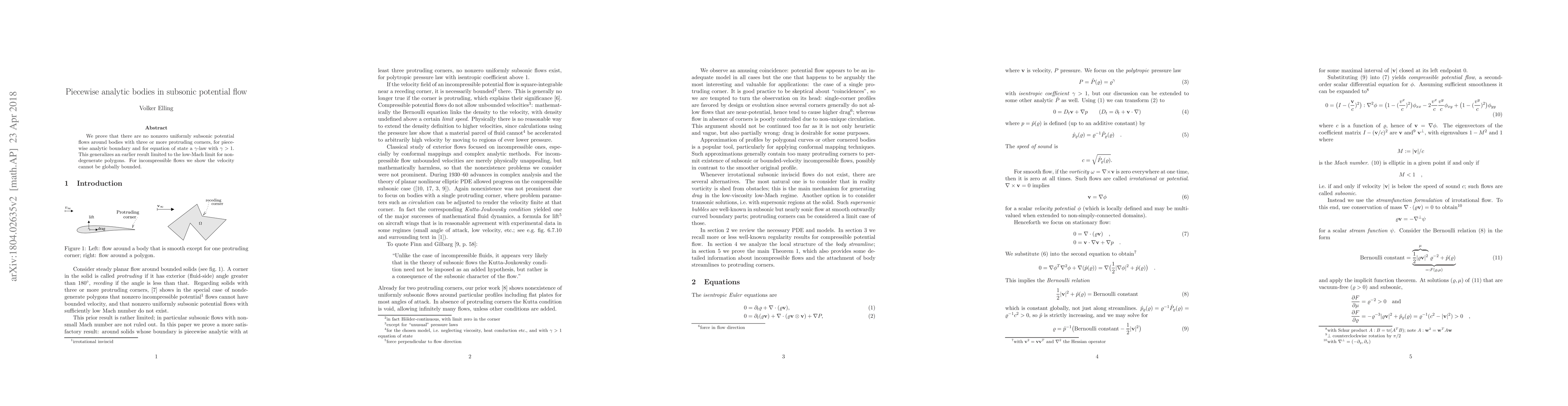 We prove that there are no nonzero uniformly subsonic potential flows around bodies with three or more protruding corners, for piecewise analytic boundary and for equation of state a $\gamma$-law with $\gamma>1$. This generalizes an earlier result limited to the low-Mach limit for nondegenerate polygons. For incompressible flows we show the velocity cannot be globally bounded.