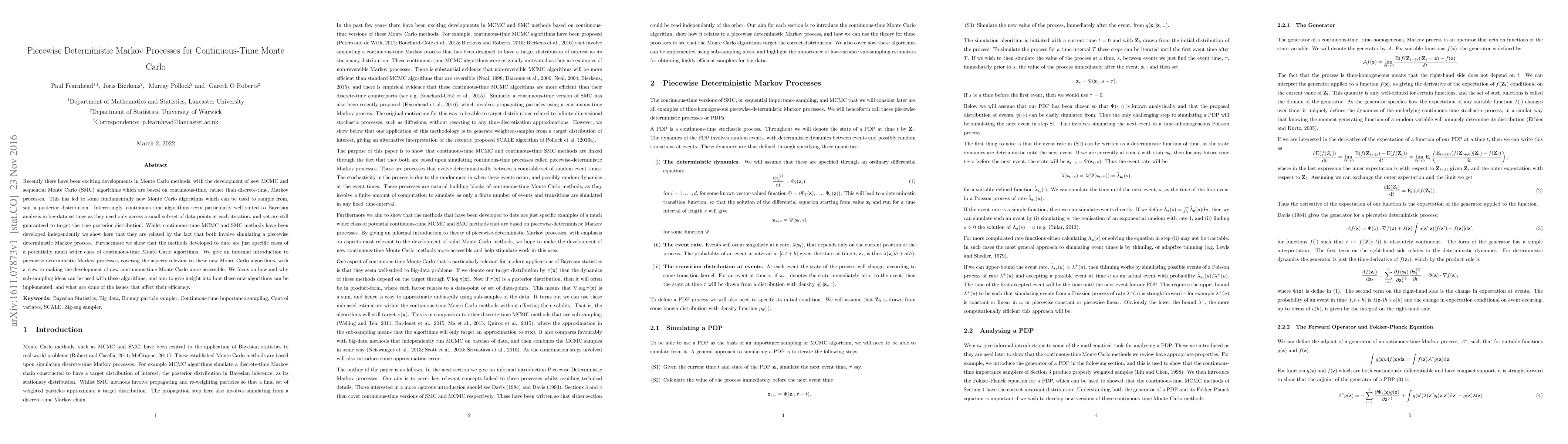 This paper explores the development of continuous-time Monte Carlo methods, specifically focusing on MCMC and SMC algorithms based on piecewise deterministic Markov processes. It highlights the advantages of these methods in big-data Bayesian analysis and provides insights into their implementation and efficiency.
