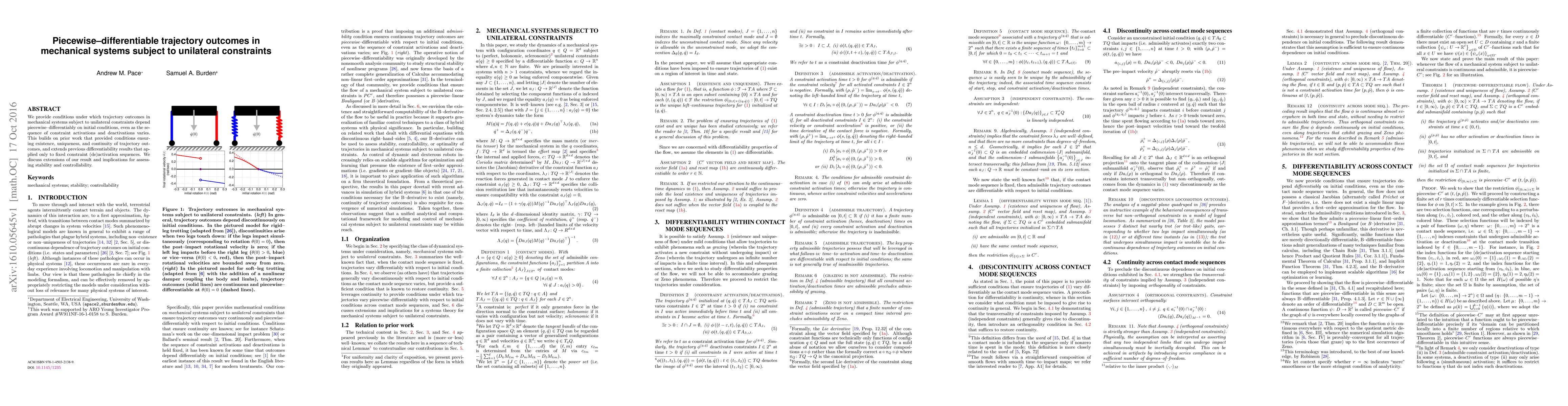 This paper establishes conditions for piecewise-differentiable trajectory outcomes in mechanical systems with unilateral constraints, extending previous results to variable constraint sequences. Implications for stability and controllability assessments are also discussed.