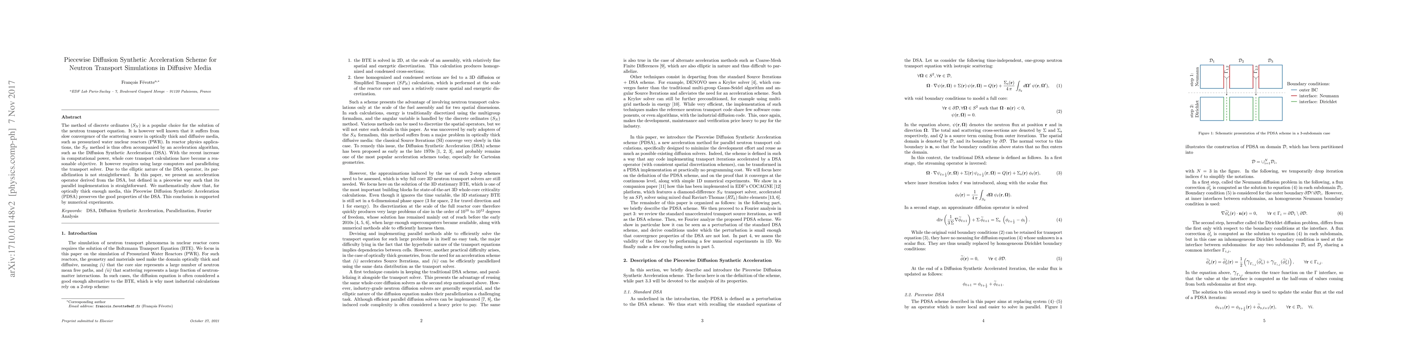 This paper introduces a Piecewise Diffusion Synthetic Acceleration (PDSA) scheme for accelerating neutron transport simulations in optically thick, diffusive media. The proposed PDSA method is designed for straightforward parallel implementation, addressing the challenges of the Diffusion Synthetic Acceleration (DSA) in large-scale reactor physics calculations.