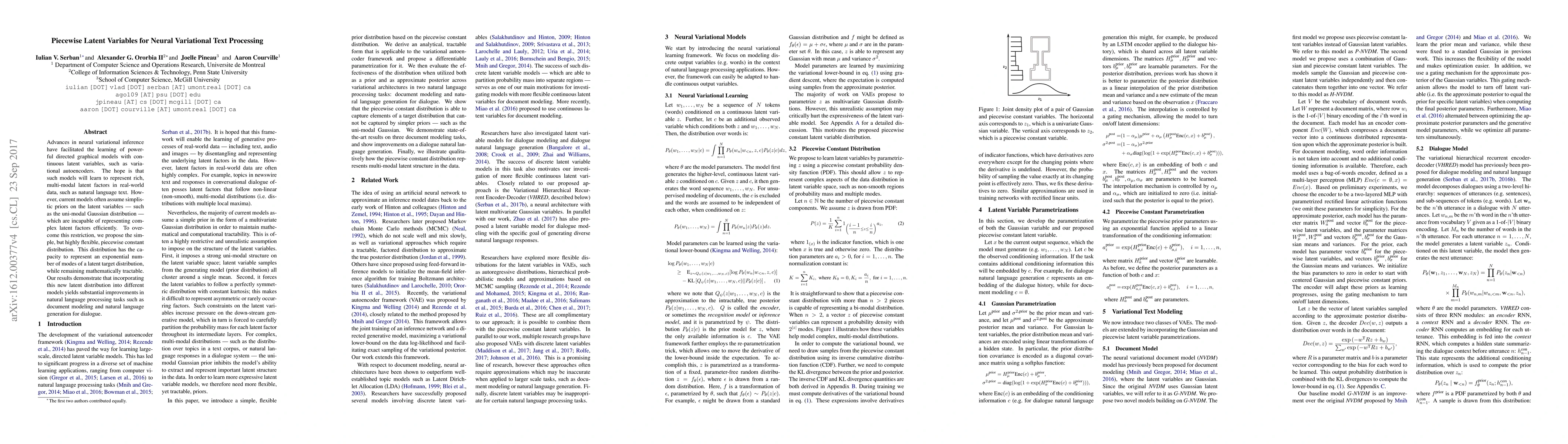This paper introduces a piecewise constant distribution for neural variational inference to better represent complex latent factors in natural language text. The proposed method significantly improves performance in document modeling and natural language generation tasks compared to traditional models.
