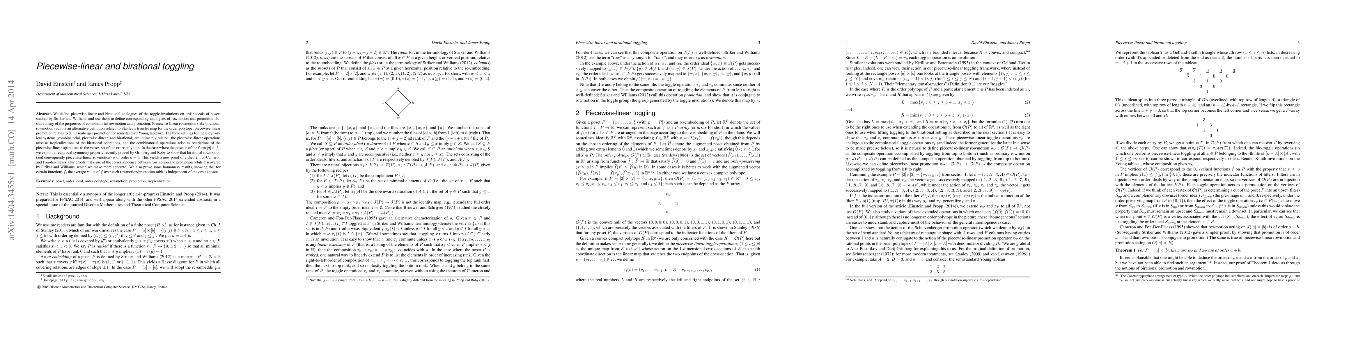 This paper introduces piecewise-linear and birational analogues of combinatorial rowmotion and promotion, showing their properties and connections. It demonstrates that these operations are tropicalizations of each other, revealing a reciprocal symmetry property leading to a new proof of a theorem by Cameron and Fon-der-Flaass.