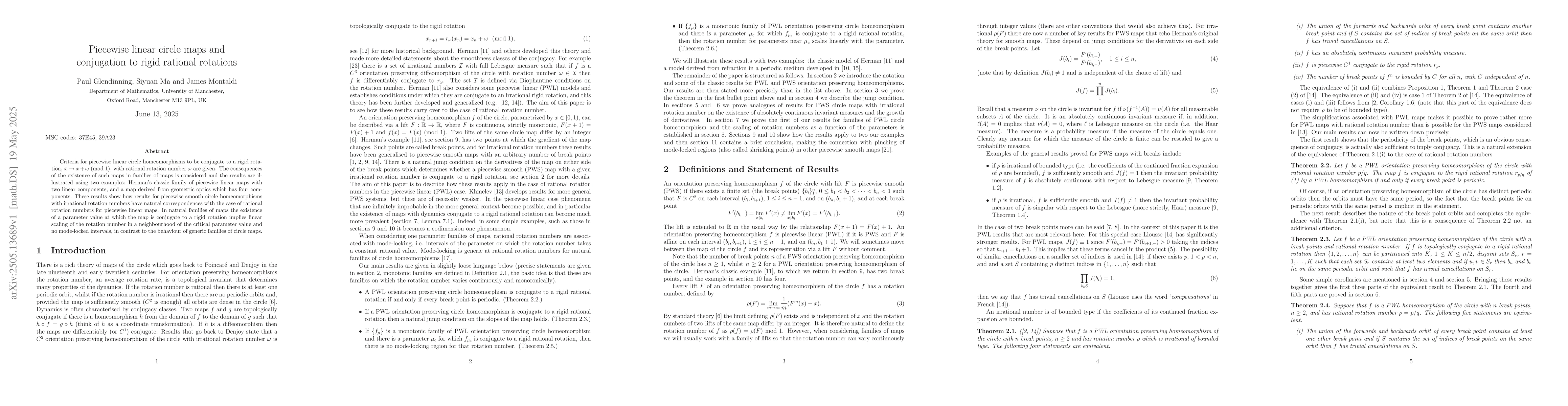 The paper presents specific criteria for conjugation to rigid rational rotations and demonstrates these criteria through examples, contributing to the theory of circle maps and dynamical systems.