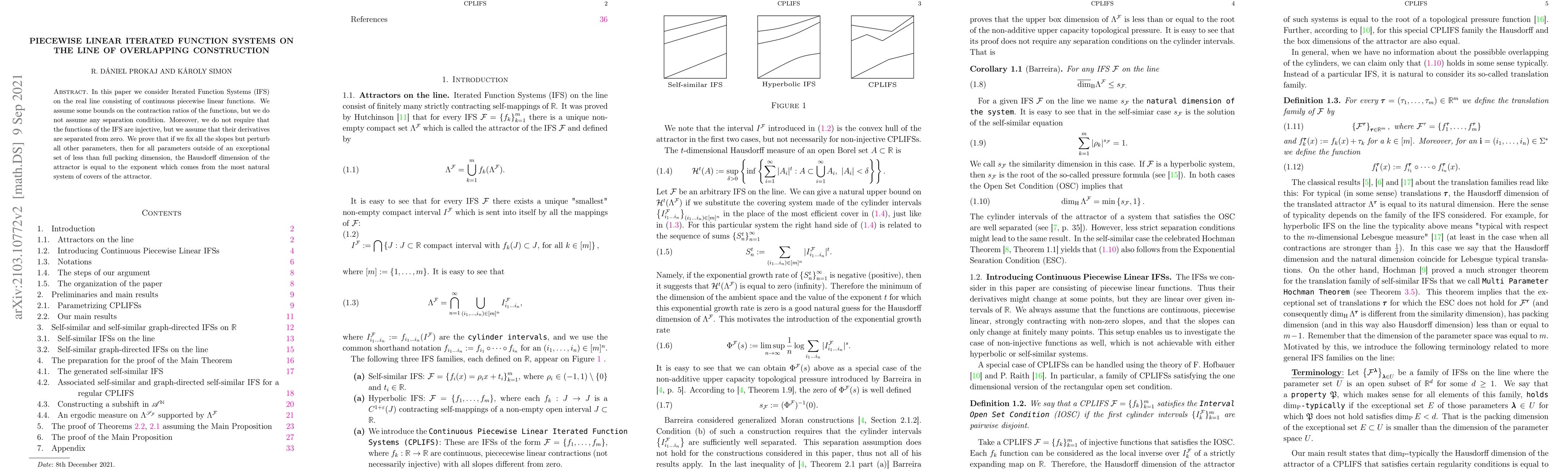 This paper explores Iterated Function Systems (IFS) on the real line composed of continuous piecewise linear functions without separation or injectivity conditions, proving that the Hausdorff dimension of the attractor equals the expected dimension when the slopes are fixed and other parameters are varied, except for a set of negligible measure.