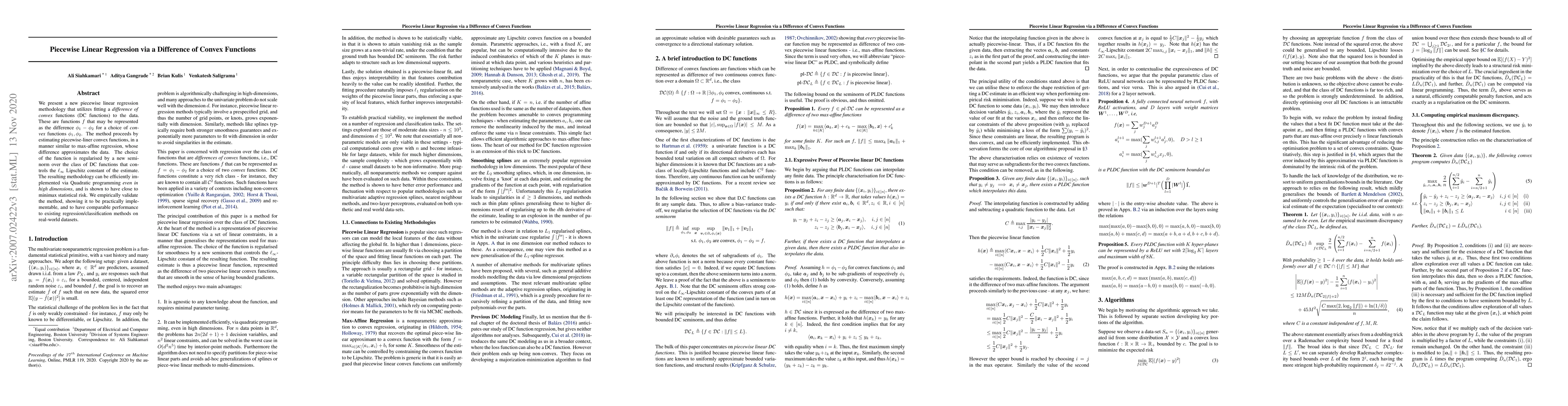 This paper introduces a novel piecewise linear regression technique using a difference of convex functions (DC functions) to fit data. The method efficiently estimates piecewise-linear convex functions and employs a new seminorm to control the Lipschitz constant, enabling practical implementation via quadratic programming and competitive performance on real-world datasets.