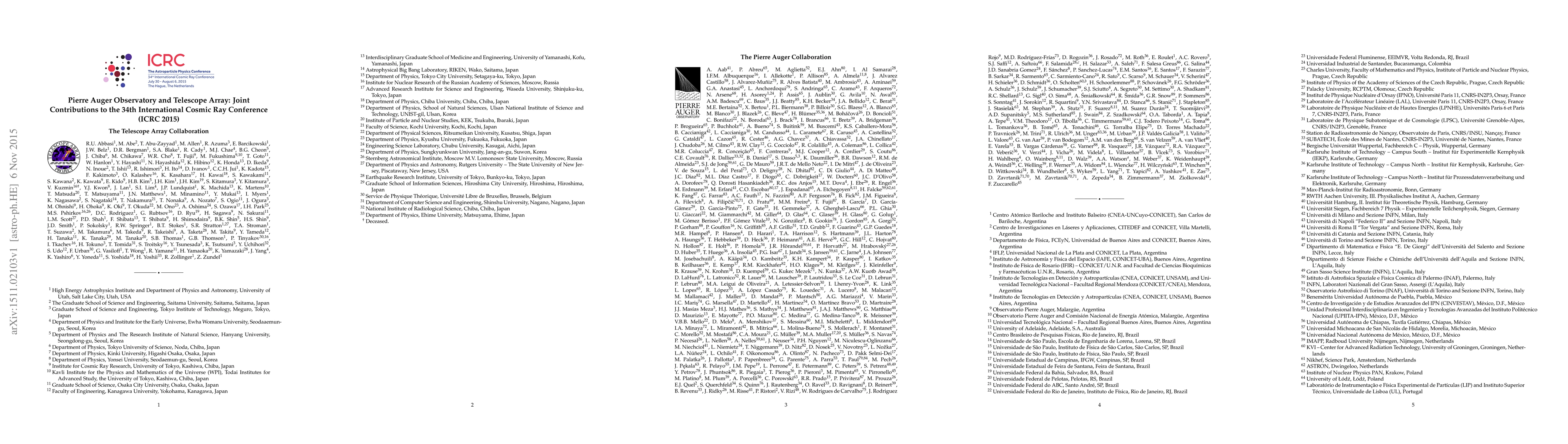 Joint contributions of the Pierre Auger Collaboration and the Telescope Array Collaboration to the 34th International Cosmic Ray Conference, 30 July - 6 August 2015, The Hague, The Netherlands.