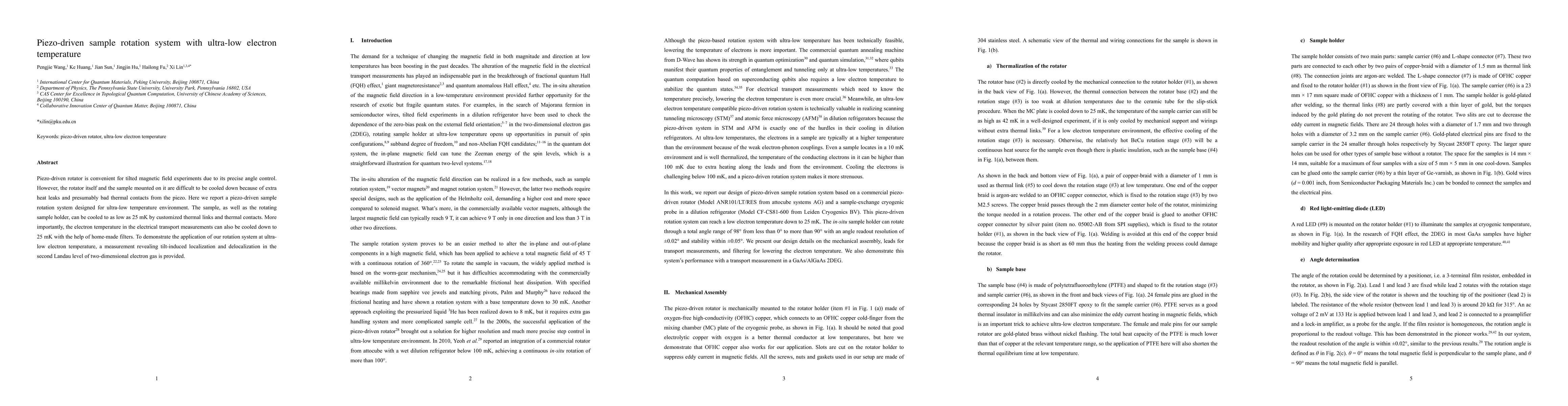 This paper presents a piezo-driven sample rotation system capable of ultra-low temperatures down to 25 mK, addressing thermal contact and heat leak issues. It demonstrates the application of this system in revealing tilt-induced localization and delocalization in the second Landau level of two-dimensional electron gas.
