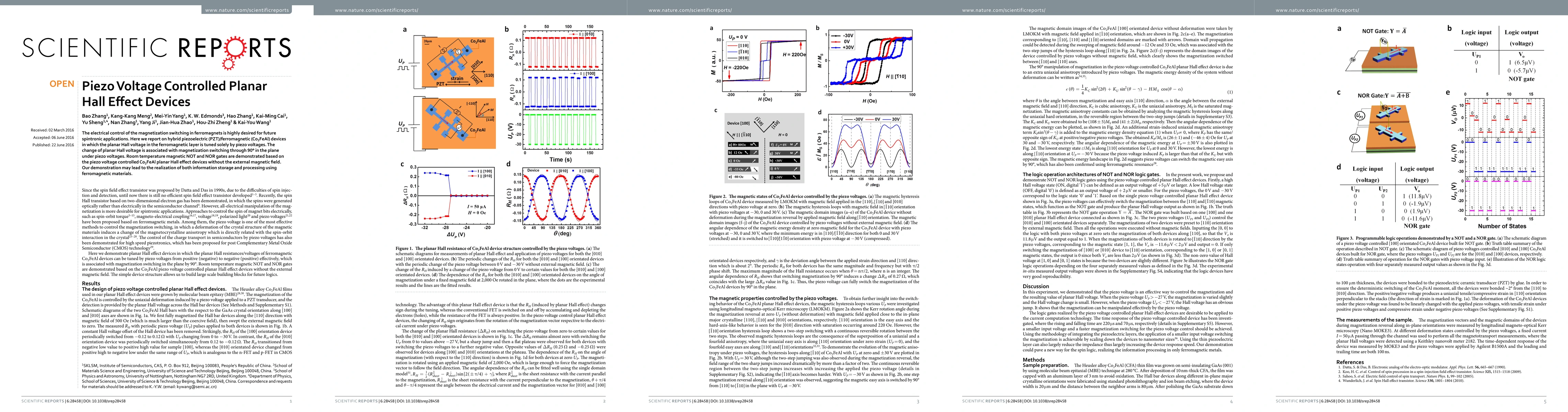 This paper presents hybrid piezoelectric/ferromagnetic devices where magnetization switching in Co2FeAl is controlled by piezo voltages, achieving planar Hall voltage tuning at room temperature. The findings enable the realization of magnetic NOT and NOR gates, potentially advancing spintronic applications for information storage and processing.