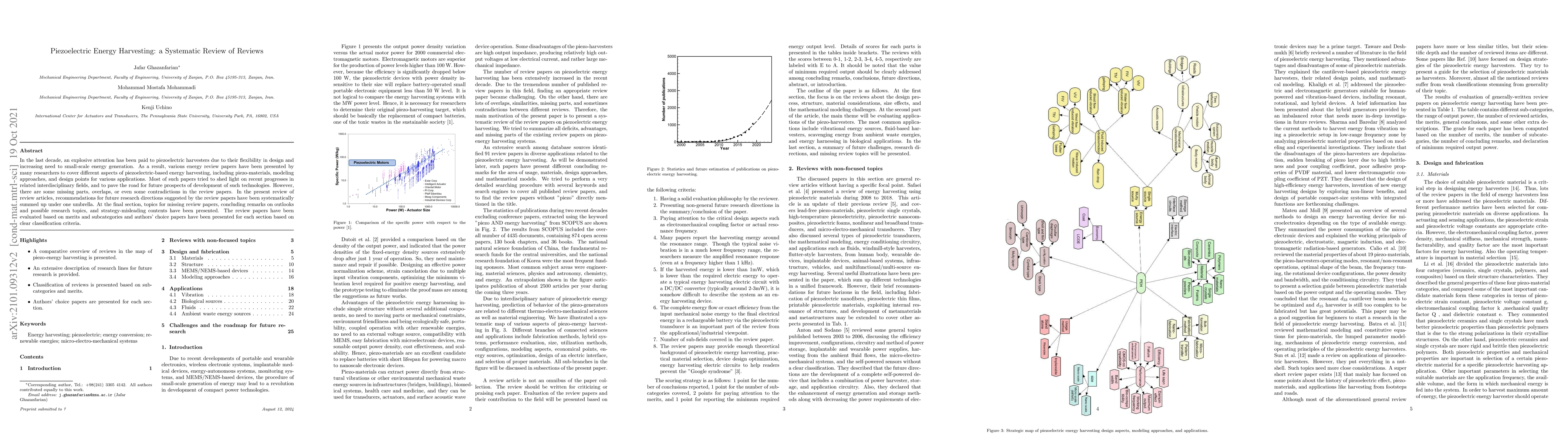 This systematic review summarizes various piezoelectric energy harvester review papers, identifying gaps, overlaps, and contradictions. It consolidates future research directions and suggests topics for missing reviews, aiming to guide future development in this field for non-experts.