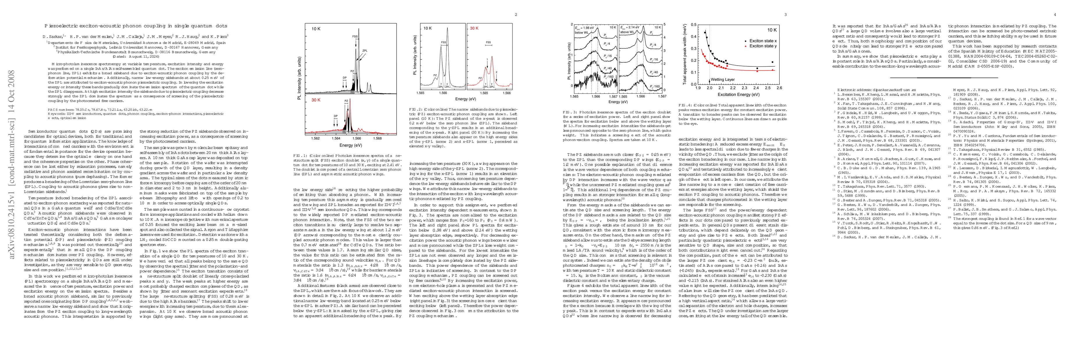 This study investigates the exciton-acoustic phonon coupling in an InAs/AlAs quantum dot using micro-photoluminescence spectroscopy. The results show that exciton-acoustic phonon coupling via deformation potential and piezoelectric effects leads to sidebands in the emission spectrum, which dominate under reduced excitation energy or intensity. High excitation intensity screens the piezoelectric coupling, restoring the zero-phonon line.