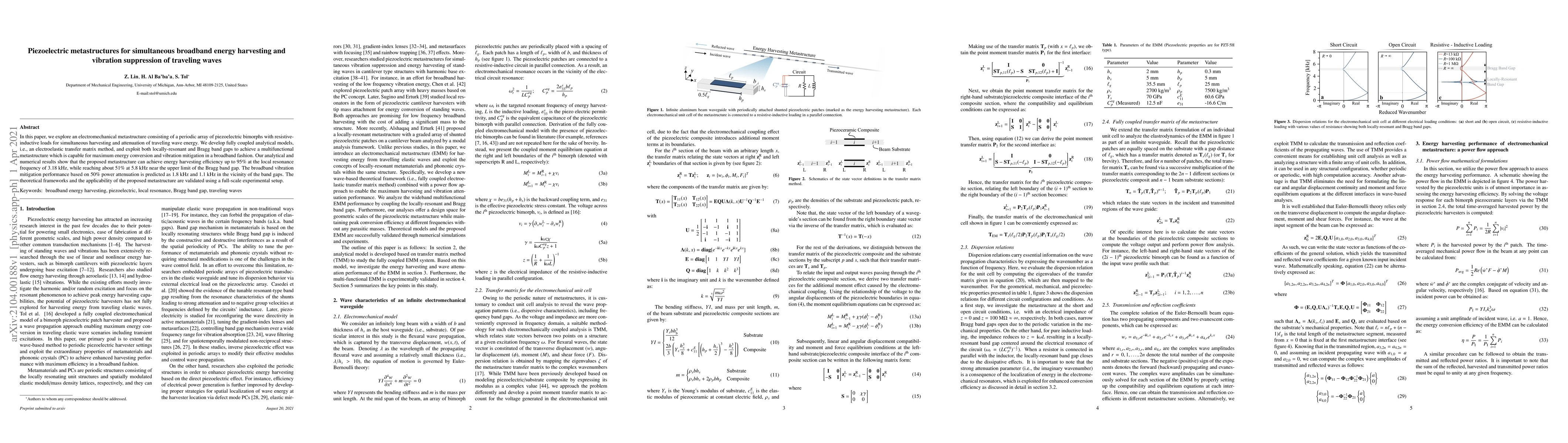 The paper develops an analytical transfer matrix method to model the electroelastic behavior of piezoelectric metastructures, enabling the optimization of energy harvesting and vibration suppression performance.