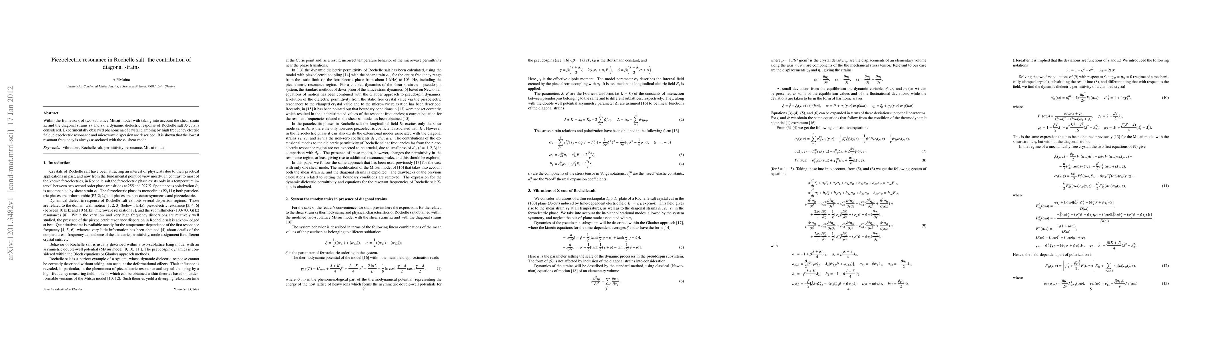 This paper investigates the dynamic dielectric response of Rochelle salt X-cuts using the Mitsui model, focusing on shear and diagonal strains. It explains the phenomena of crystal clamping, piezoelectric resonance, and microwave dispersion, concluding that the lowest resonant frequency is linked to the $\varepsilon_4$ shear mode.