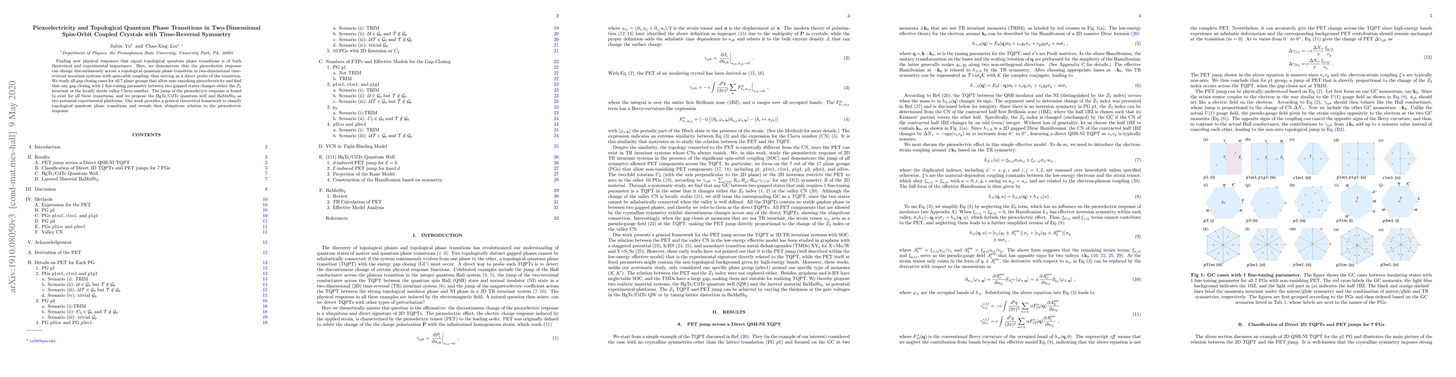 This paper demonstrates that piezoelectric response can serve as a probe for topological quantum phase transitions in two-dimensional spin-orbit coupled crystals, showing a discontinuous change across such transitions. It proposes HgTe/CdTe quantum well and BaMnSb$_2$ as potential experimental platforms and provides a theoretical framework for classifying these transitions.
