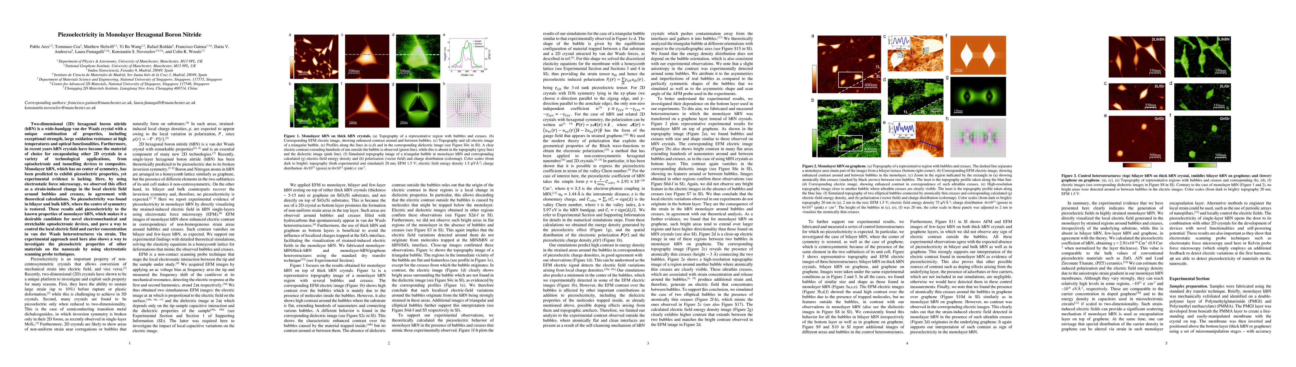 This paper demonstrates piezoelectric properties in monolayer hexagonal boron nitride (hBN) via electrostatic force microscopy, confirming theoretical predictions and expanding its potential applications in electromechanical and optoelectronic devices. The study also establishes a nanoscale method for investigating piezoelectricity in other materials using electrostatic scanning probe techniques.