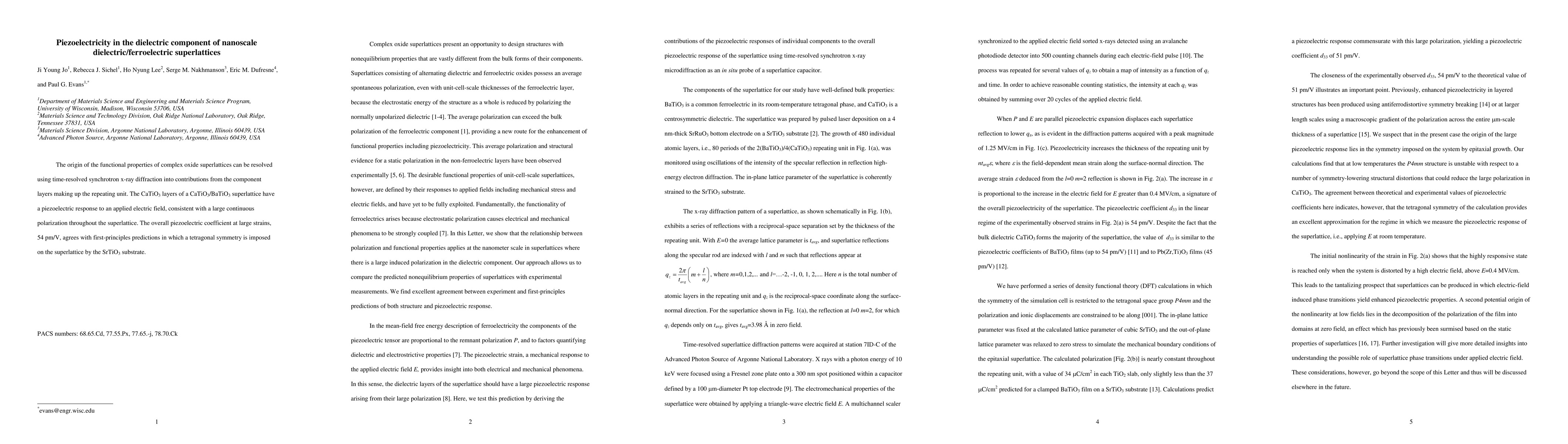 Researchers observed a piezoelectric response in a nanoscale superlattice, where alternating layers of CaTiO3 and BaTiO3 exhibit continuous polarization under applied electric field. The findings align with first-principles predictions and demonstrate the potential for these superlattices to be used in piezoelectric devices.