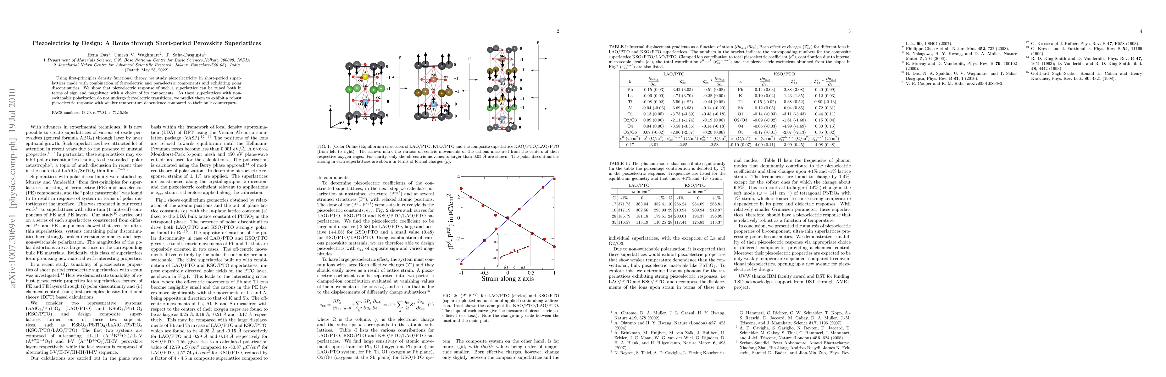 This paper investigates piezoelectric properties in short-period perovskite superlattices using density functional theory, demonstrating that their piezoelectric response can be finely tuned by component selection. The study predicts that these superlattices will exhibit a robust piezoelectric response with reduced temperature dependence due to their nonswitchable polarization.