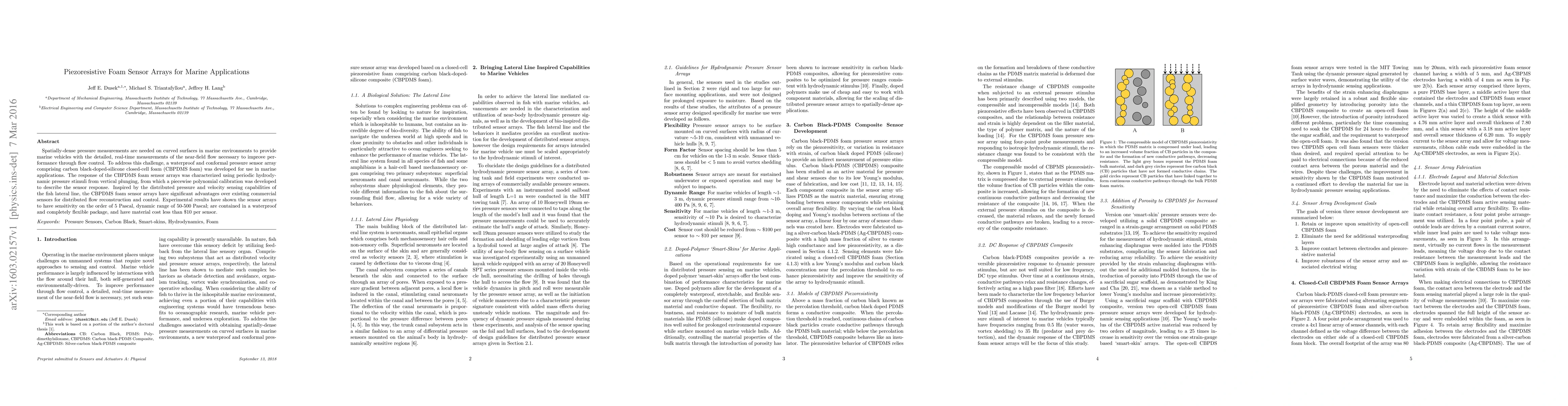 This paper develops waterproof, conformal piezoresistive foam sensor arrays made from carbon black-doped-silicone for marine applications, providing detailed real-time pressure measurements on curved surfaces. The sensor arrays demonstrate high sensitivity and a dynamic range suitable for flow control, with a material cost under $10.