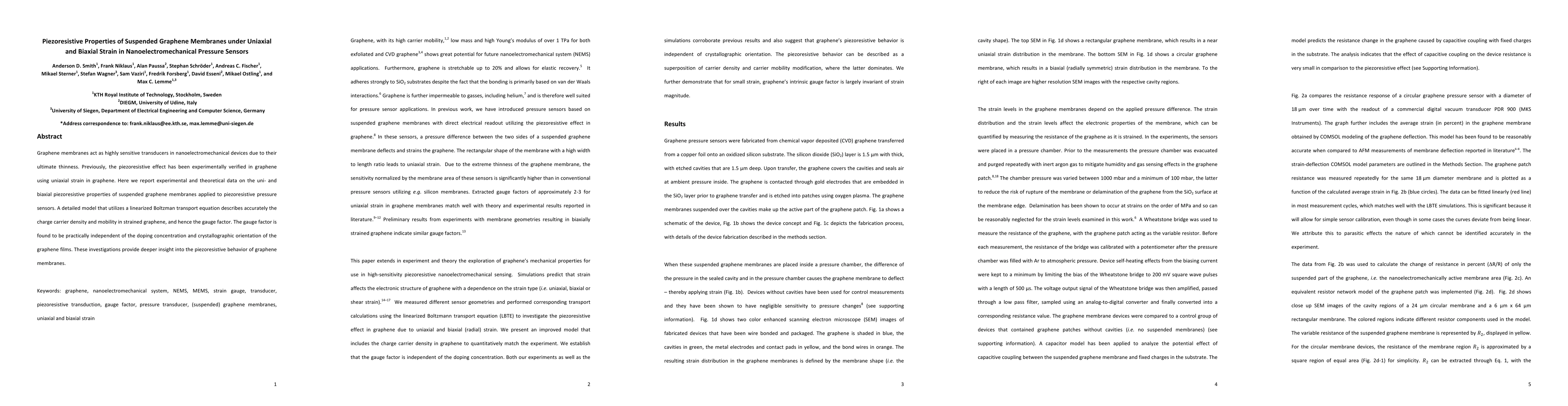 This paper investigates the piezoresistive properties of suspended graphene membranes under uniaxial and biaxial strain for use in nanoelectromechanical pressure sensors. The study combines experimental and theoretical data to describe the charge carrier density and mobility in strained graphene, revealing a gauge factor that is independent of doping concentration and orientation.