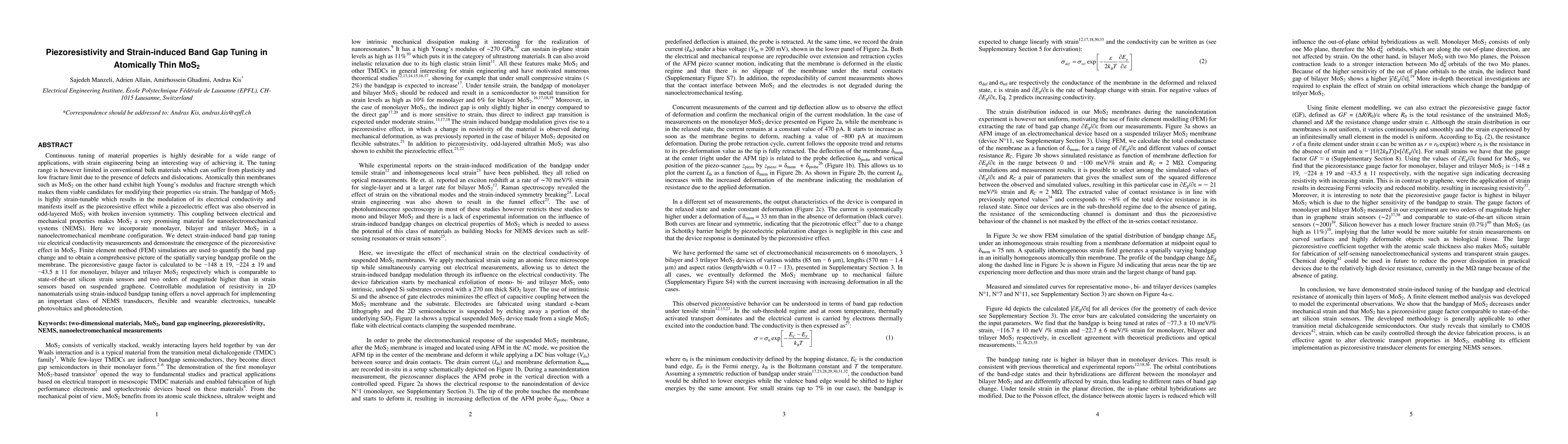 This paper investigates the piezoresistive effect and strain-induced bandgap tuning in atomically thin MoS2 layers, demonstrating significant piezoresistive gauge factors and highlighting its potential for applications in nanoelectromechanical systems, flexible electronics, and tunable optoelectronic devices.