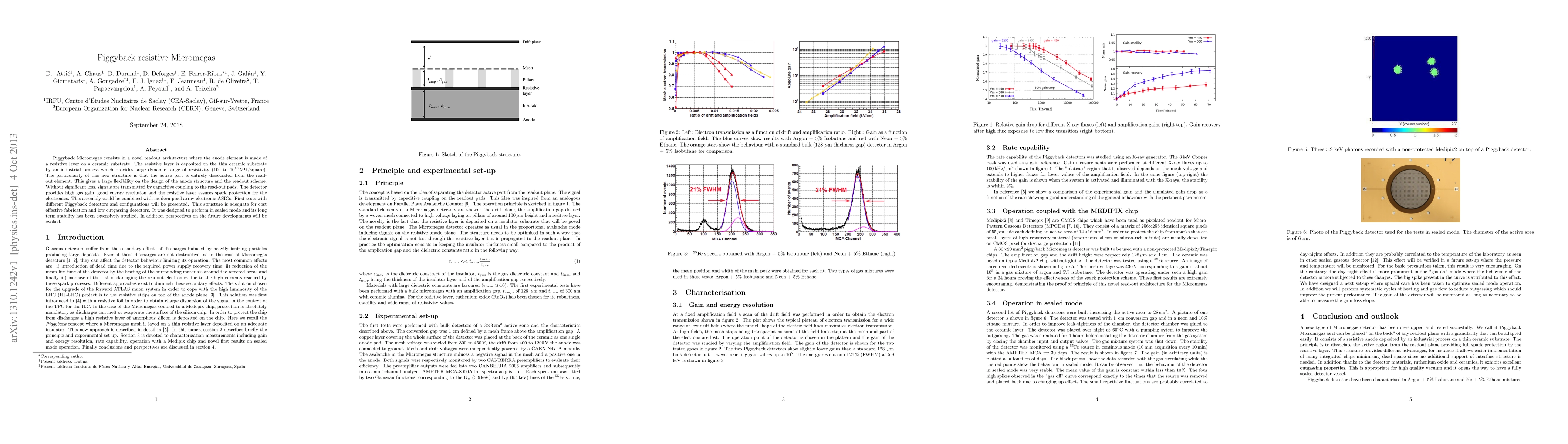 Piggyback resistive Micromegas detectors utilize a resistive layer on a ceramic substrate for the anode, allowing for a large dynamic range and capacitive signal transmission, while offering high gas gain, good energy resolution, and spark protection. Initial tests show promising performance, and the design supports cost-effective fabrication and low outgassing.
