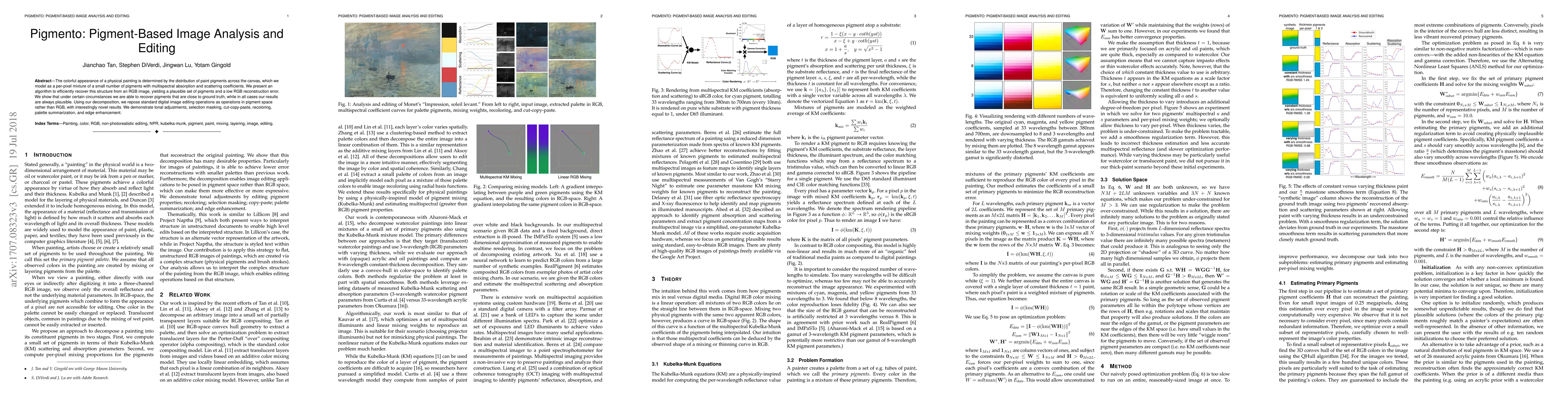 The colorful appearance of a physical painting is determined by the distribution of paint pigments across the canvas, which we model as a per-pixel mixture of a small number of pigments with multispectral absorption and scattering coefficients. We present an algorithm to efficiently recover this structure from an RGB image, yielding a plausible set of pigments and a low RGB reconstruction error. We show that under certain circumstances we are able to recover pigments that are close to ground truth, while in all cases our results are always plausible. Using our decomposition, we repose standard digital image editing operations as operations in pigment space rather than RGB, with interestingly novel results. We demonstrate tonal adjustments, selection masking, cut-copy-paste, recoloring, palette summarization, and edge enhancement.