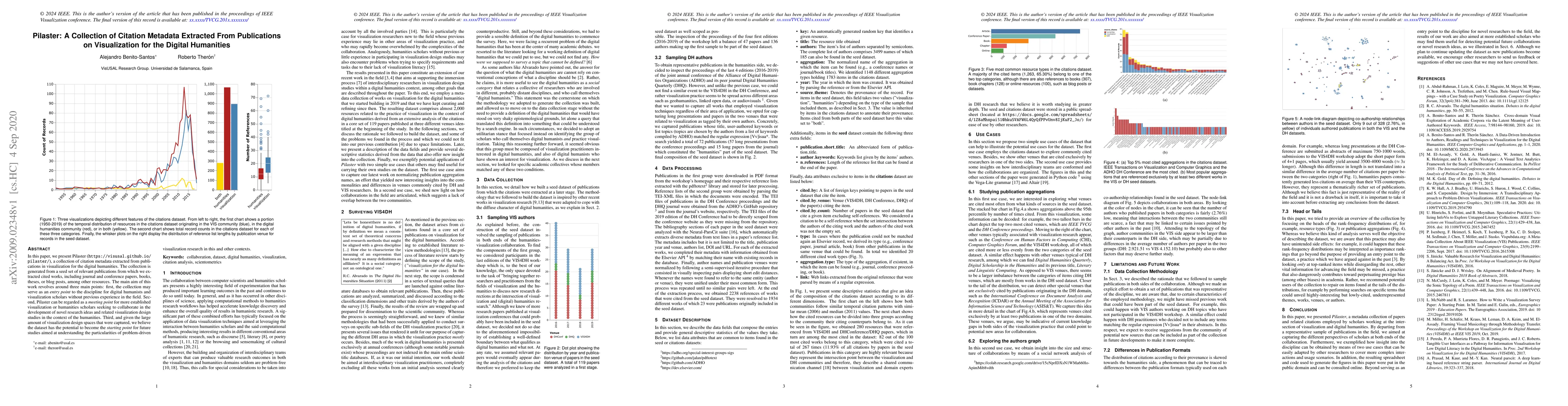 Pilaster is a collection of citation metadata from digital humanities publications, offering an entry point for scholars and collaboration opportunities for visualization designers in the humanities. It has potential as a starting point for future studies on problem-driven visualization research.