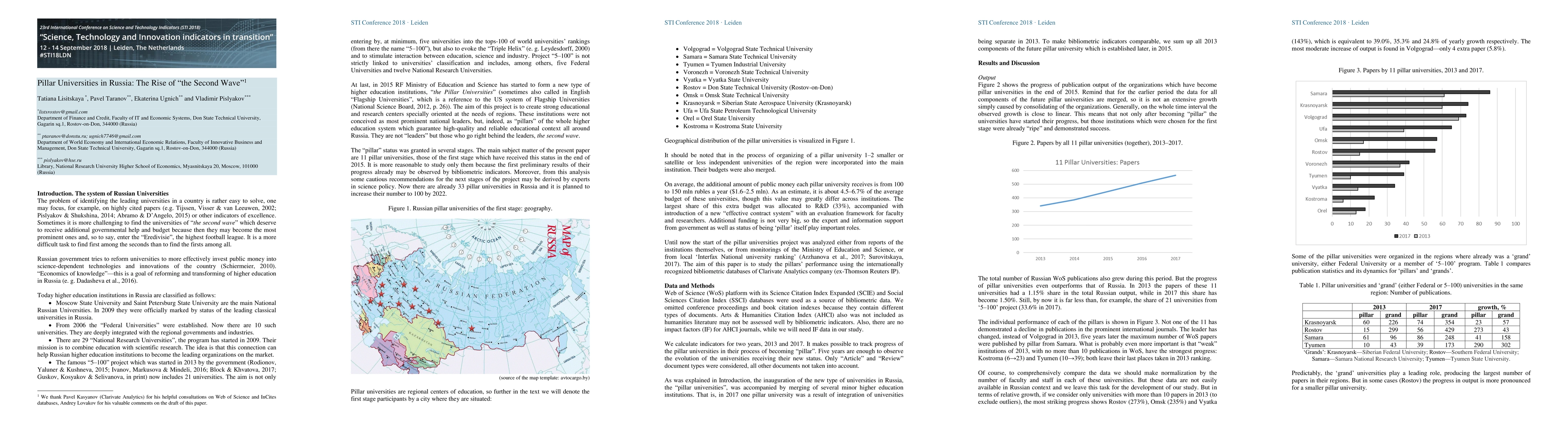 The problem of identifying the leading universities in a country is rather easy to solve, one may focus, for example, on highly cited papers or other indicators of excellence. Sometimes it is more challenging to find the universities of "the second wave" which deserve to receive additional support because it may help them to become the most prominent ones, "the first". We study progress of the initial phase of such universities, named "pillar" in Russian education system. The first results, measured by 'short-distance bibliometrics', seem to be encouraging.