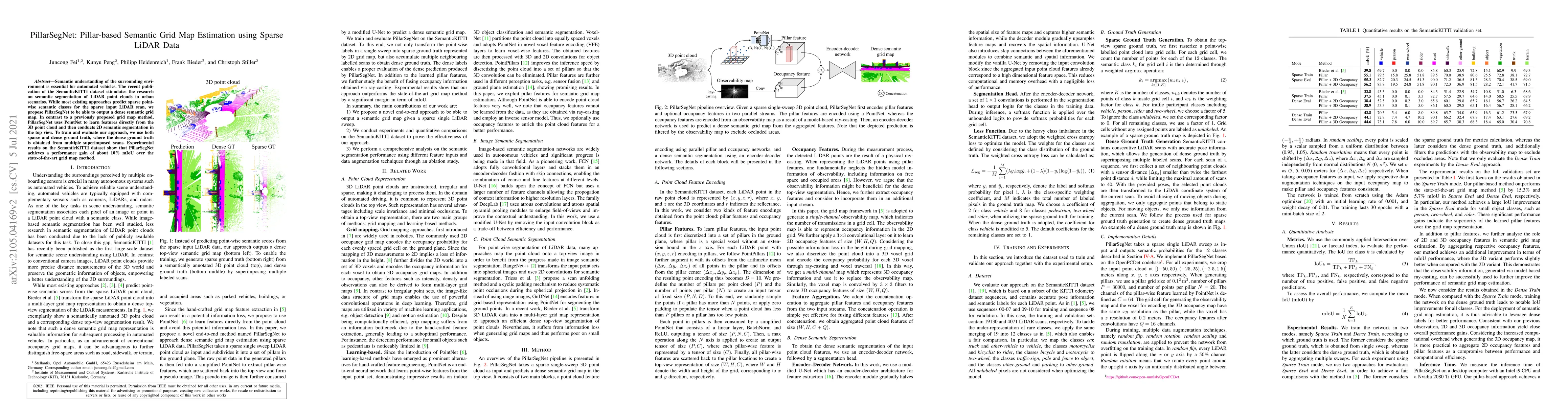 PillarSegNet proposes a novel method for generating dense semantic grid maps from sparse LiDAR data using PointNet for feature learning and 2D semantic segmentation in the top view. This approach outperforms existing grid map methods by achieving a 10% improvement in mean Intersection over Union (mIoU) on the SemanticKITTI dataset.