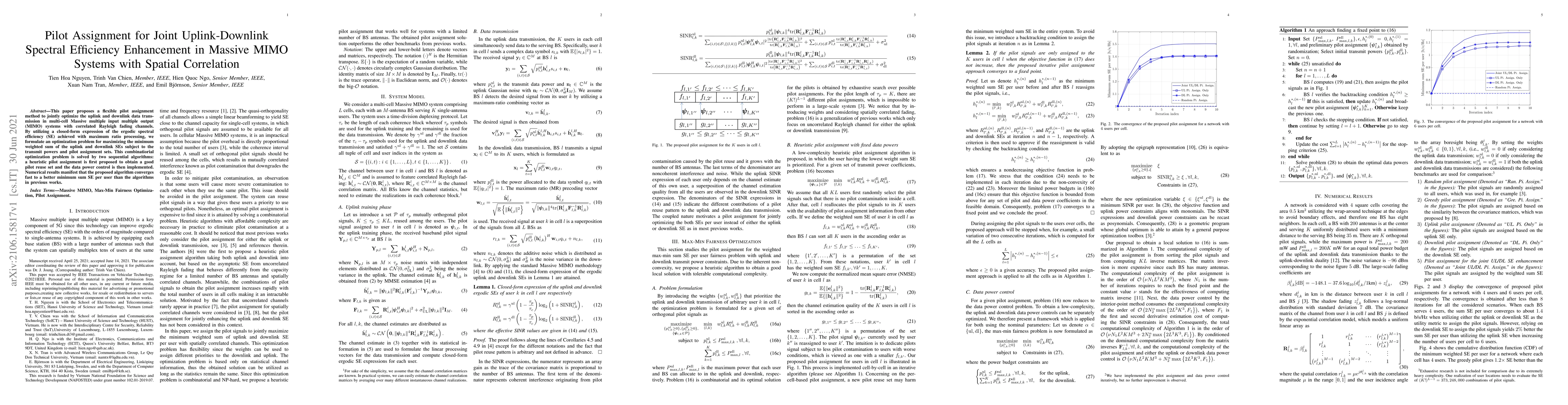 This paper proposes a flexible pilot assignment method to optimize data transmission in massive MIMO systems with correlated channels, achieving faster convergence and better spectral efficiency than previous algorithms.