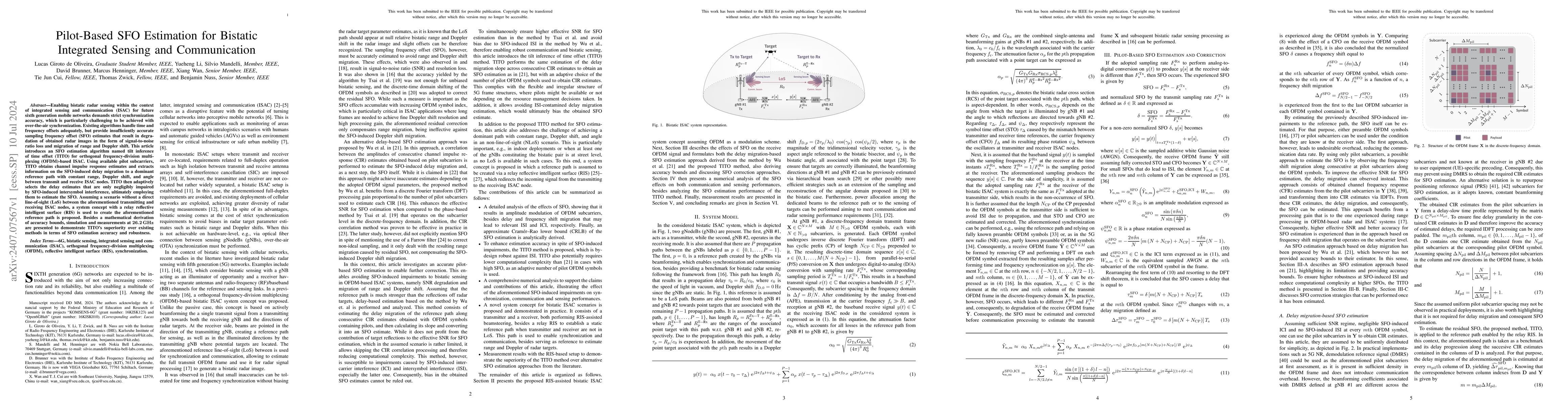 This paper proposes a novel SFO estimation algorithm called TITO for OFDM-based bistatic integrated sensing and communication in 6G networks. TITO leverages pilot subcarriers to estimate SFO with high accuracy, addressing issues like signal-to-noise ratio loss and range/Doppler shifts. Simulation and measurement results at 26.2 GHz show TITO’s superior performance compared to existing methods.