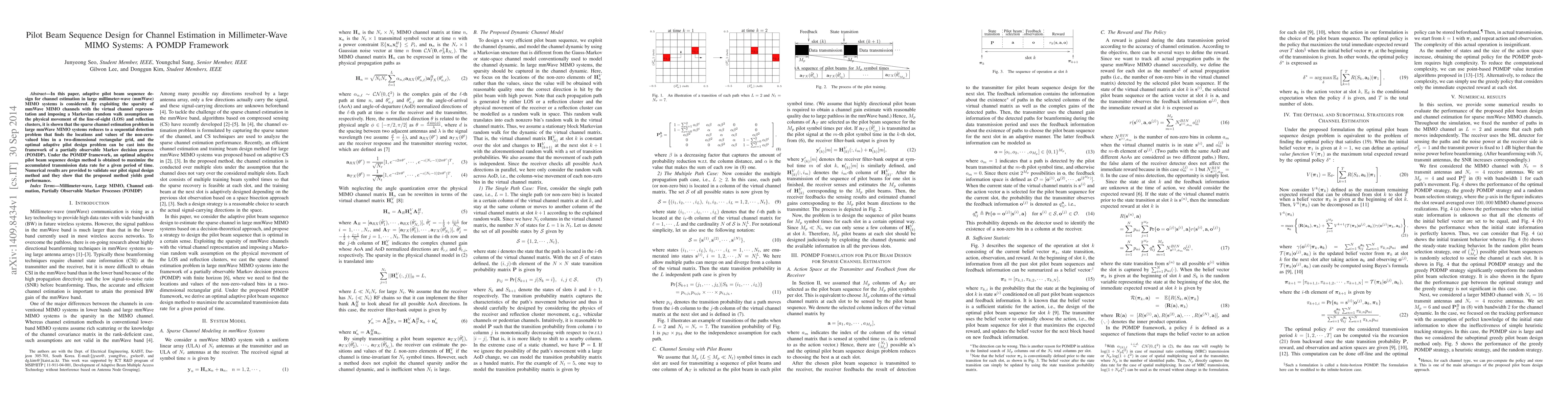This paper proposes an adaptive pilot beam sequence design for channel estimation in large millimeter-wave MIMO systems, framed within a partially observable Markov decision process (POMDP) to maximize accumulated transmission data rate. Numerical results demonstrate the effectiveness of the proposed method.