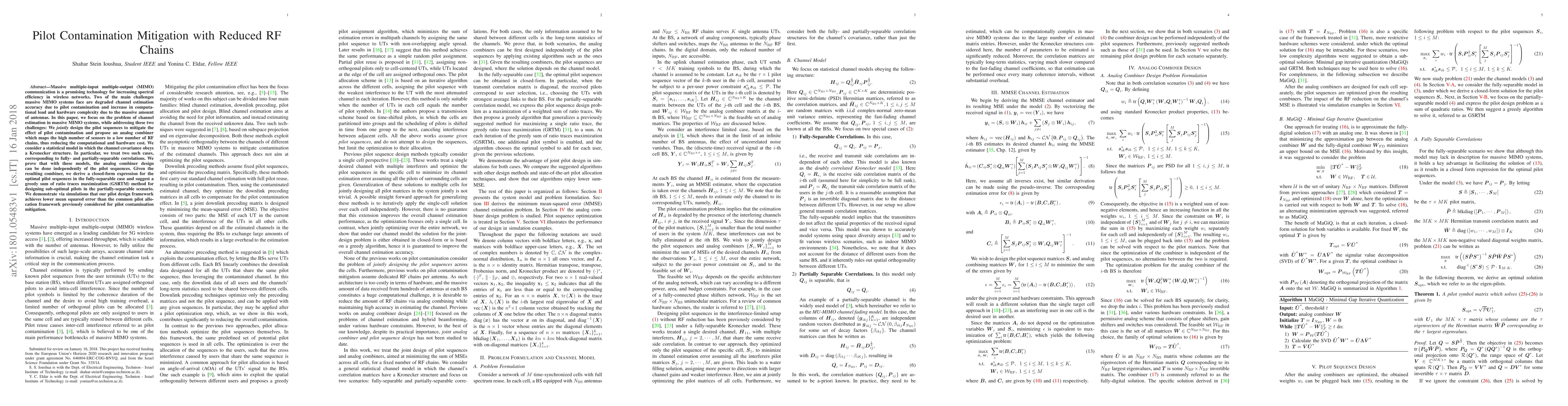 Massive multiple-input multiple-output (MIMO) communication is a promising technology for increasing spectral efficiency in wireless networks. Two of the main challenges massive MIMO systems face are degraded channel estimation accuracy due to pilot contamination and increase in computational load and hardware complexity due to the massive amount of antennas. In this paper, we focus on the problem of channel estimation in massive MIMO systems, while addressing these two challenges: We jointly design the pilot sequences to mitigate the effect of pilot contamination and propose an analog combiner which maps the high number of sensors to a low number of RF chains, thus reducing the computational and hardware cost. We consider a statistical model in which the channel covariance obeys a Kronecker structure. In particular, we treat two such cases, corresponding to fully- and partially-separable correlations. We prove that with these models, the analog combiner design can be done independently of the pilot sequences. Given the resulting combiner, we derive a closed-form expression for the optimal pilot sequences in the fully-separable case and suggest a greedy sum of ratio traces maximization (GSRTM) method for designing sub-optimal pilots in the partially-separable scenario. We demonstrate via simulations that our pilot design framework achieves lower mean squared error than the common pilot allocation framework previously considered for pilot contamination mitigation.