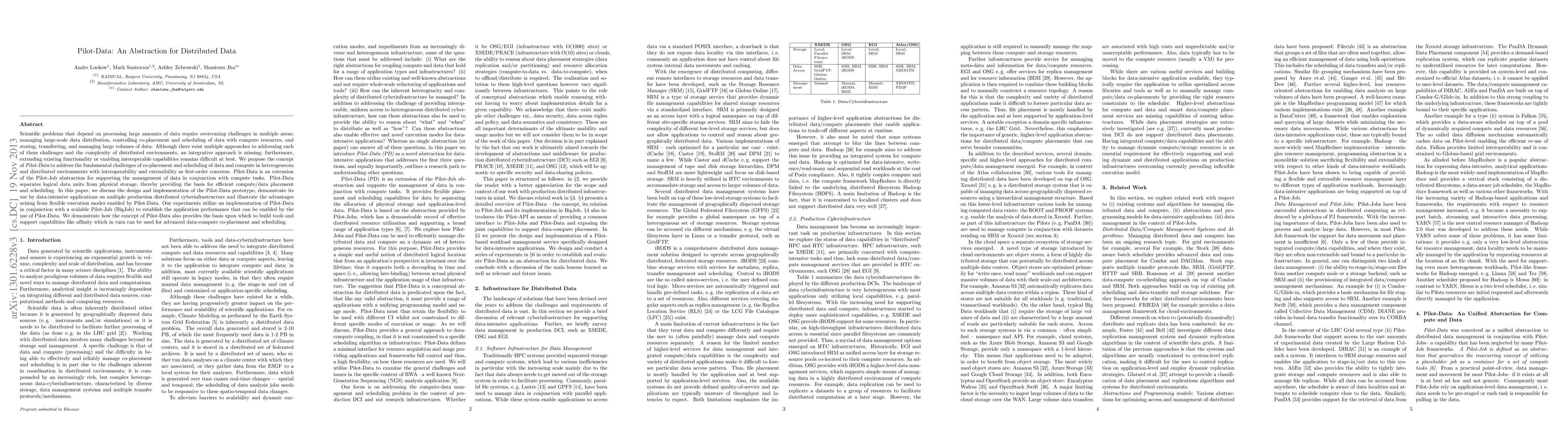 The Pilot-Data abstraction aims to address challenges in managing large-scale distributed data by integrating data placement and scheduling with compute tasks. The prototype demonstrates improved performance and flexibility in data-intensive applications across distributed environments.