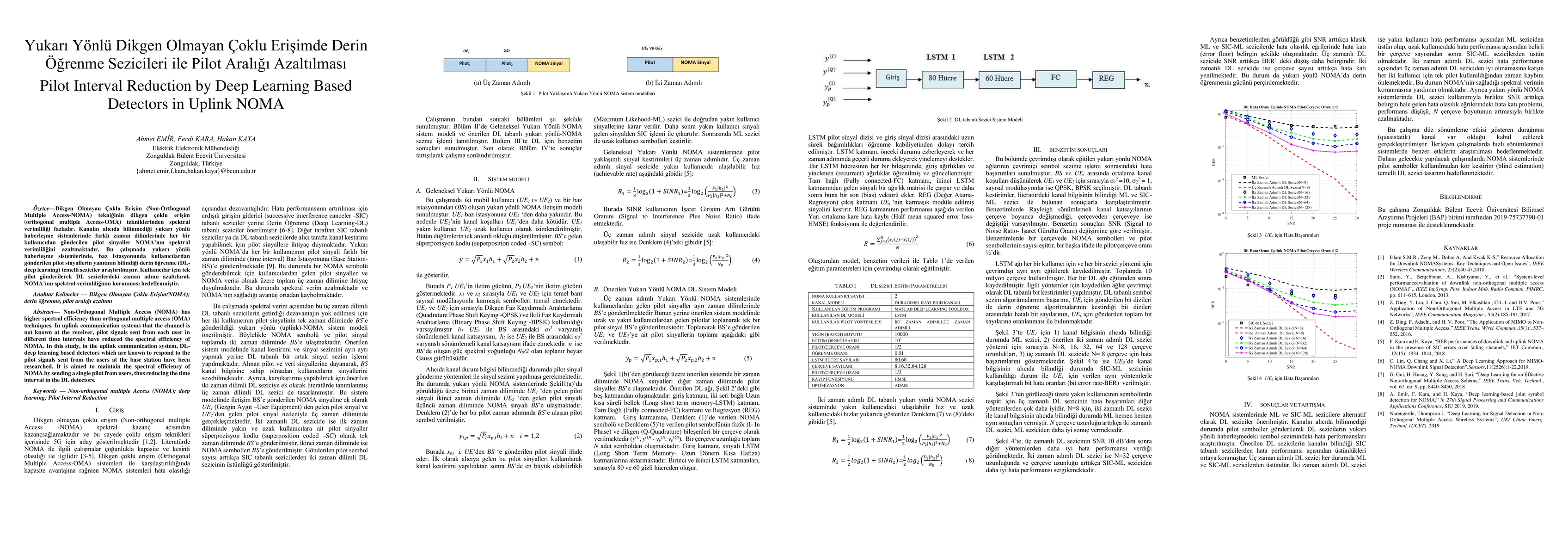 Non-Orthogonal Multiple Access (NOMA) has higher spectral efficiency than orthogonal multiple access (OMA) techniques. In uplink communication systems that the channel is not known at the receiver, pilot signals sent from each user in different time intervals have reduced the spectral efficiency of NOMA. In this study, in the uplink communication system, DL-deep learning based detectors which are known to respond to the pilot signals sent from the users at the base station have been researched. It is aimed to maintain the spectral efficiency of NOMA by sending a single pilot from users, thus reducing the time interval in the DL detectors.
