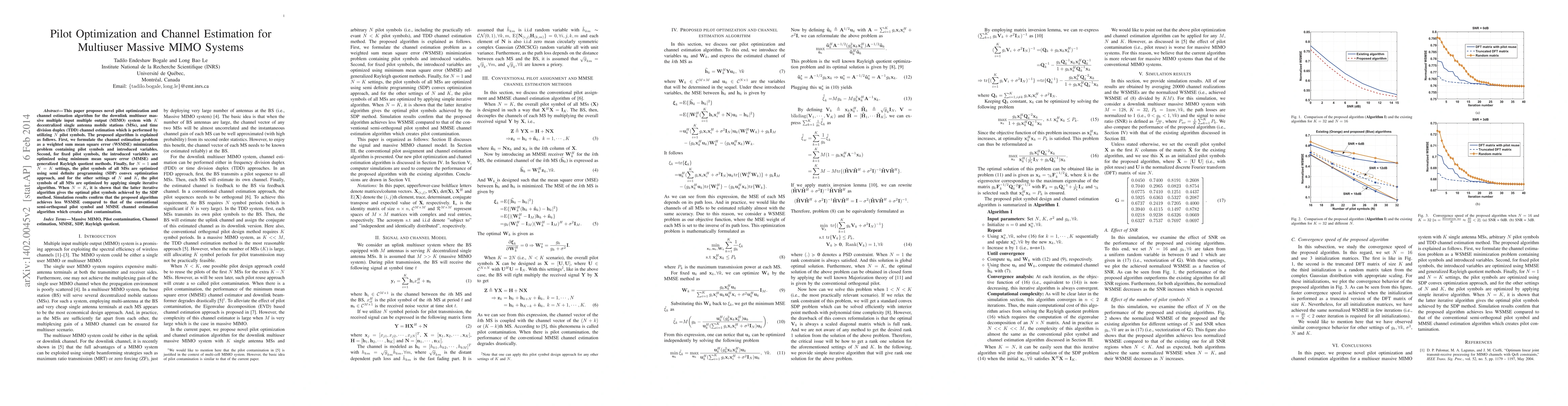 This paper introduces a novel pilot optimization and channel estimation algorithm for multiuser massive MIMO systems, minimizing weighted sum mean square error through MMSE and iterative optimization, achieving optimal pilot symbols and lower WSMSE compared to conventional methods.