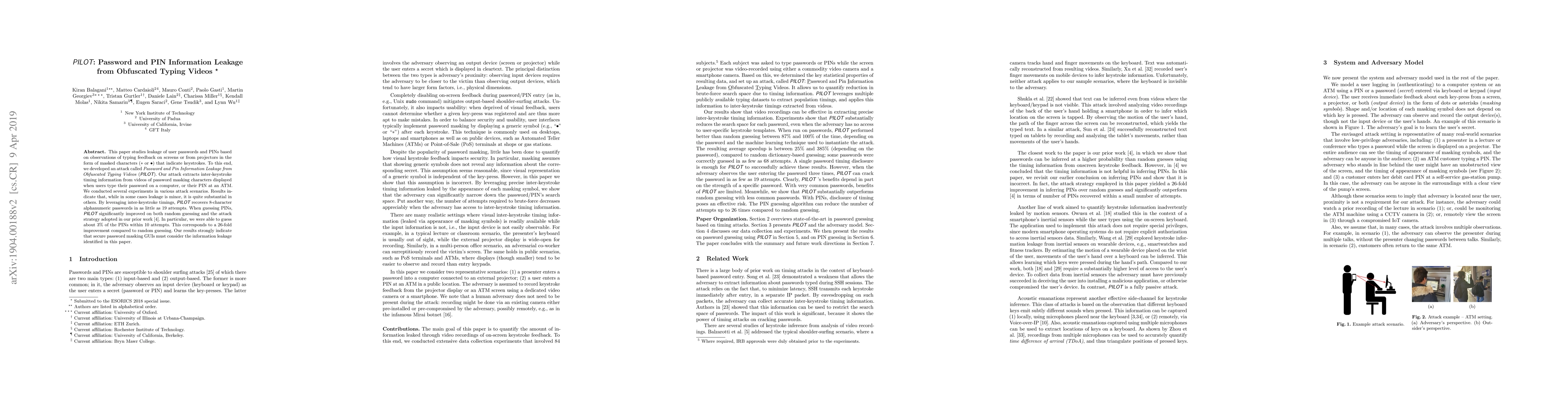This paper introduces PILOT, an attack that extracts inter-keystroke timing information from masked typing videos to recover passwords and PINs. Experiments show substantial leakage, enabling the recovery of 8-character passwords in 19 attempts and a 26-fold improvement over random guessing for PINs.