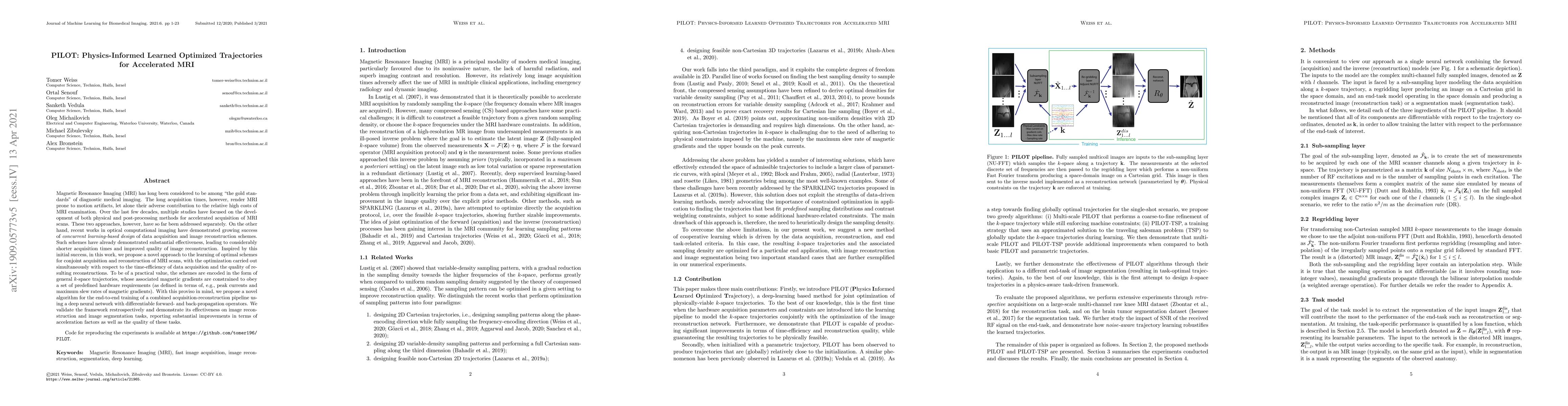 The research proposes a novel algorithm, PILOT, for end-to-end training of a combined acquisition-reconstruction pipeline using a deep neural network with differentiable forward- and back-propagation operators for MRI scans. It optimizes simultaneously for time-efficiency of data acquisition and quality of reconstructions, constrained by hardware requirements.